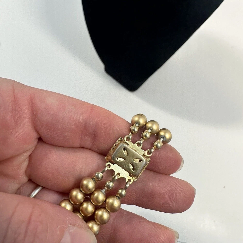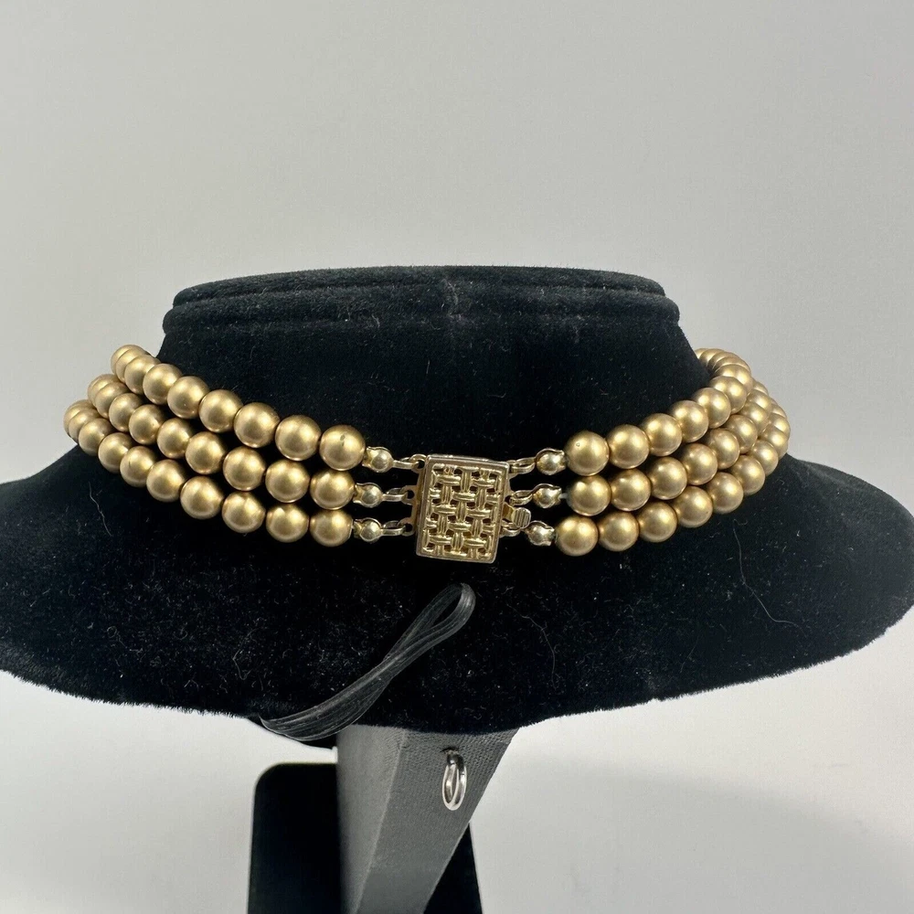 Vintage Multistrand Champagne Costume Pearl Choker Womens Necklace 1960s Style