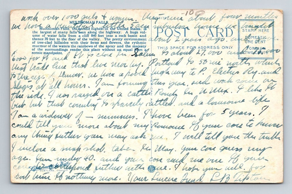 Vintage Multnomah Falls Columbia River Highway Oregon Souvenir Postcard