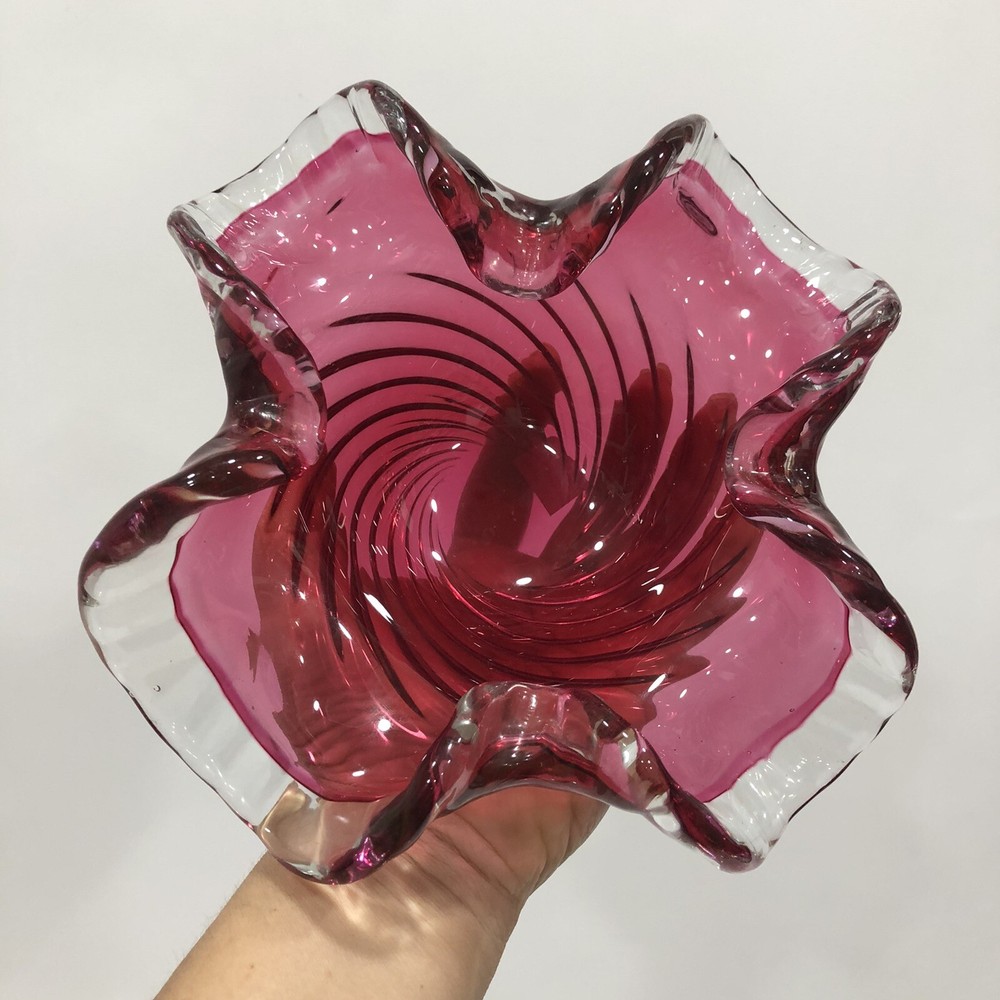 Brand: Murano Subject/Theme: Candy Dish Bowl Country/Region of Origin: Unknown Artist: Unknown Style: Mid-Century Modern Type: Bowl Original/Reproduction: Vintage Original Production Technique: Hand Blown Glass UPC: Does not apply Type of Glass: Blown Glass Pattern: Vintage Color: Berry Glassmaking Technique: Hand Blown Production Style: Art Glass Handmade: Yes gtin13: Does not apply Material: Glass