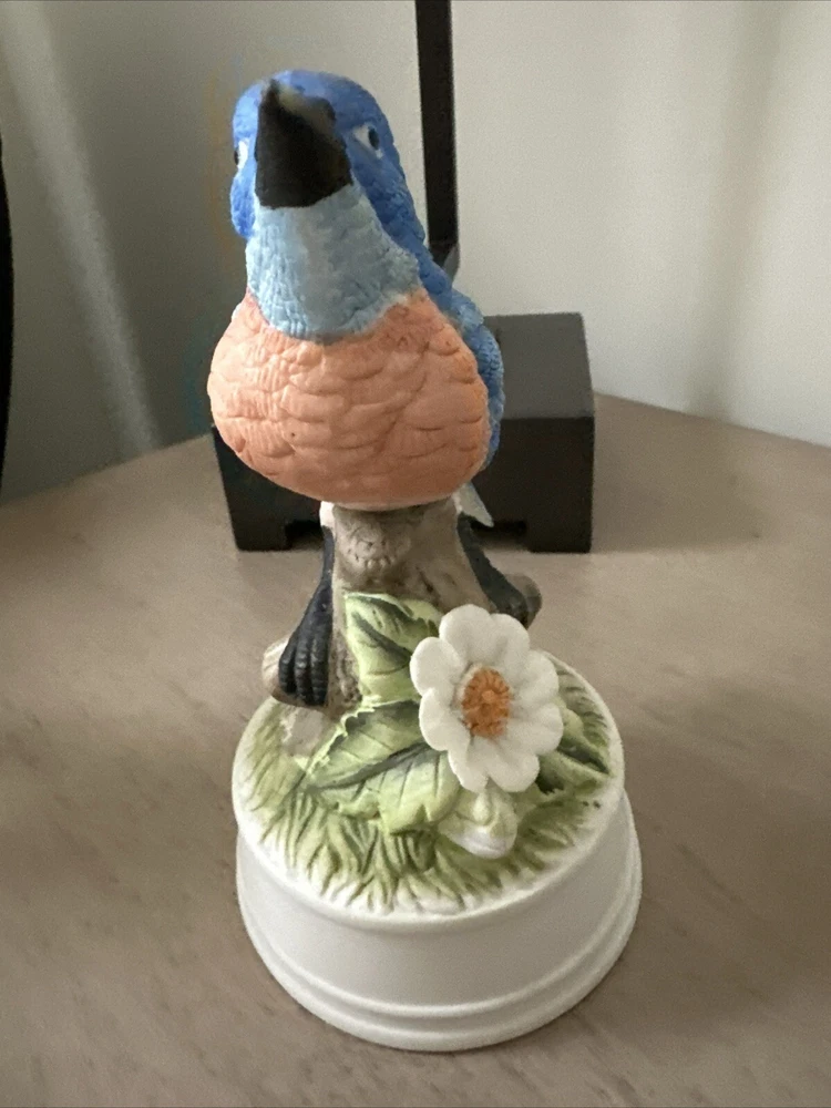 Vintage Musical Bluebird Porcelain Statue Figurine