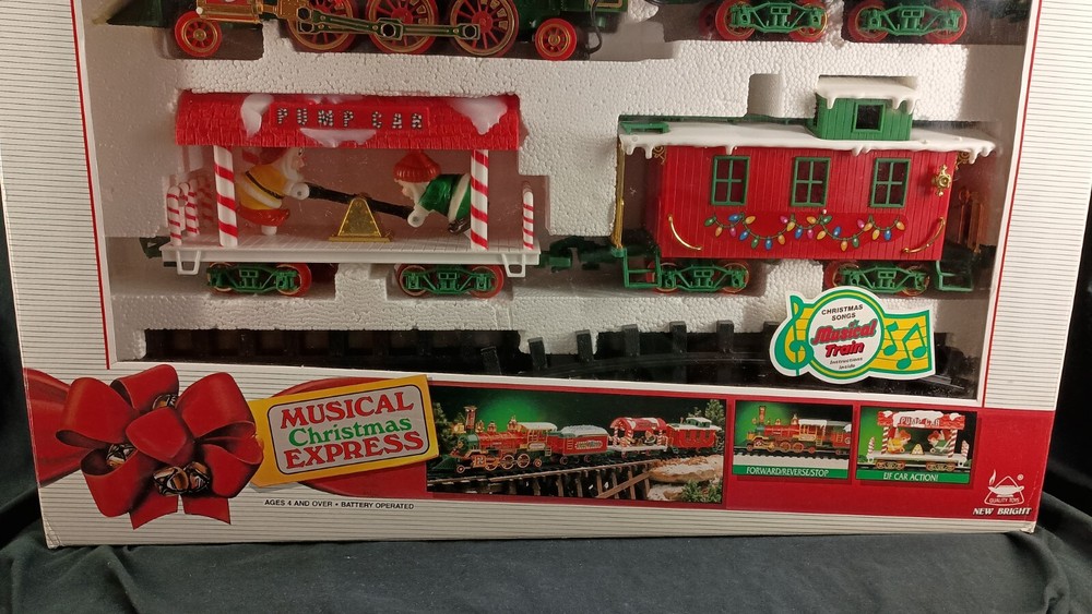 A vintage musical Christmas express train locomotive that plays music and emits sounds. Made by New Bright, this collectible item is in working condition. Perfect for the Christmas occasion, this train will bring joy and nostalgia to any holiday decor. Thank you for visiting my listing today and thank you for your interest in this item! My goal is to have a pleasant transaction resulting in a satisfied customer. I hope any transaction between us leaves you with a feeling of confidence knowing you can trust me and the items I offer here. *Most if not all my listings are set to accept offers. Feel free to send an offer and I will be happy to consider it!! *Please contact me with any questions or concerns and I will be happy to help. *Always examine the photos carefully, and if in doubt, email me with any questions you may have. *Please note that condition statements are offered as a guide only. They will always be somewhat subjective and reflect our opinion, which may not necessarily agree with someone else's opinion. PLEASE READ: I aim to please and I want my buyers to have a positive transaction with me. If you have questions, concerns, or special requests related to any of my items I hope you will contact me so we can work them out to your satisfaction. I sell my items to give you a great item at a decent price while making a little profit at the same time. If you feel the item you are interested in is too pricey do not hesitate to send me a fair offer and I will consider it. My goal is to satisfy your needs and mine so both parties can benefit. SHIPPING: If you prefer a different shipping method or company please contact me and I will do all I can to make that happen. If you have concerns or requests about the packaging of your item contact me and I will do all I can to accommodate them. Shipping costs are based on location in each state or country, the costs always differ. After I have received your payment I will ship your item out within 3 business days or less excluding weekends and holidays. BEFORE PURCHASING & BIDDING: **Please see all the pictures. I do not have great photography skills but I try to get the most accurate photos I can. If you are unsure about something you see in a photo contact me so I can do what I am able to answer your concern about the item. **I cannot stress enough that if you have any questions or concerns please contact me before purchasing and bidding. Communication can solve so much. **As a customer myself, I understand the meaning of customer satisfaction and my goal is to have nothing but satisfied customers. If you are not unsatisfied with your purchase I ask that you please contact me so I can take care of your issue. My goal is for you to be 100% satisfied. INTERNATIONAL BUYERS WELCOMED - PLEASE NOTE: I welcome International buyers! Please be aware that any custom/duties/taxes that the parcel might incur once it is out of the USA are the responsibility of the buyer. Please check with your country's customs office to determine what these additional costs will be prior to bidding or buying. Please refer to the eBay Site Map for more information if needed.
