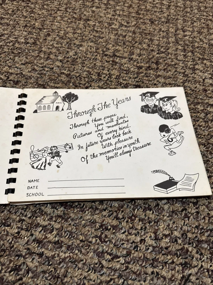 The Vintage My School Scrapbook is a multi-color memory book designed to capture and preserve school years memories. It is clean with no markings, making it a blank canvas for personalization and customization. This scrapbook is not handmade and is ideal for organizing and displaying photos, notes, and other memorabilia from school experiences.