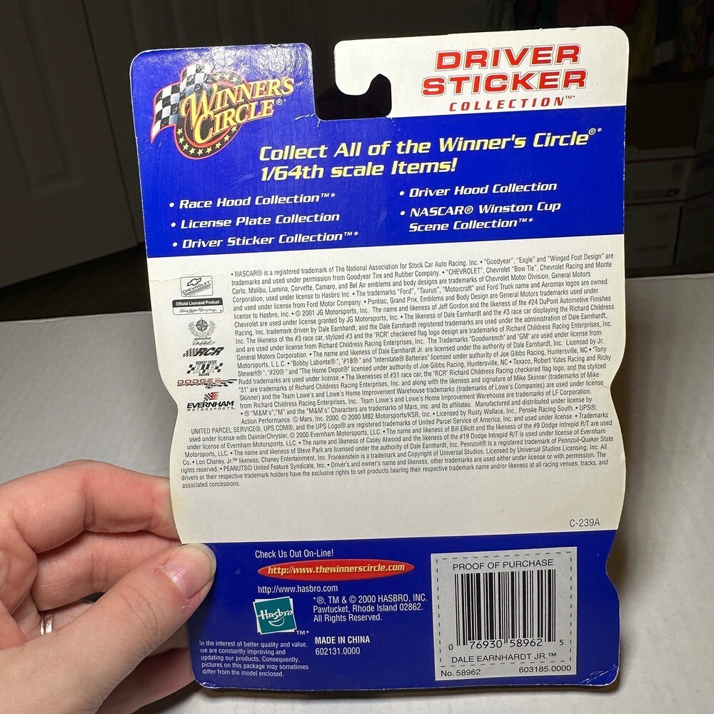 Vintage NASCAR Winner's Circle Dale Earnhardt Jr. 8 Driver Sticker Collection 1/64 Scale Car Sealed in packaging.