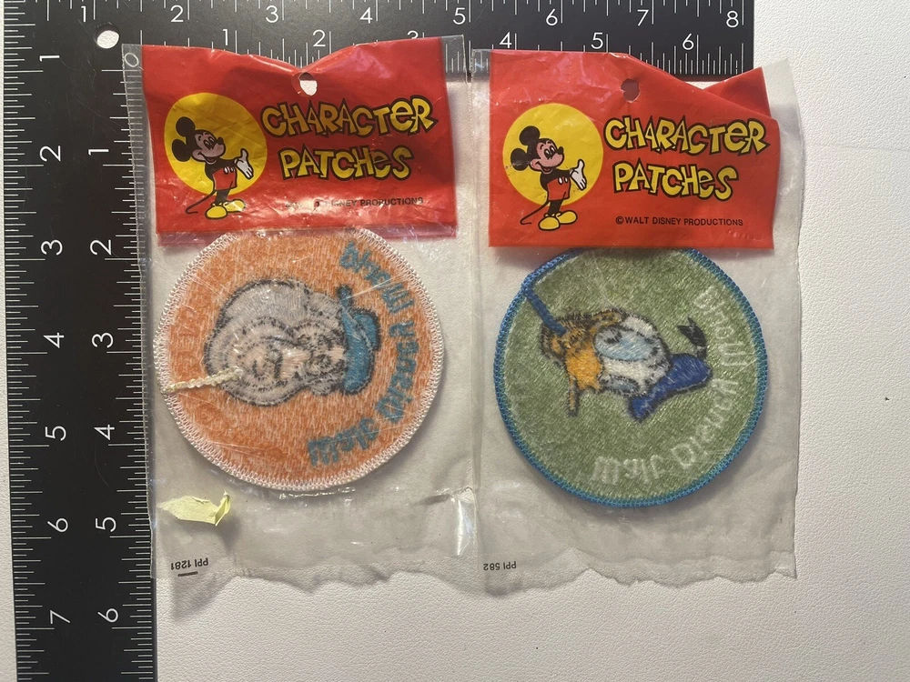 This vintage Disney character patch set features two beloved characters, Donald Duck and Baloo Bear, from the popular theme park and store franchises. The patches are embroidered and still sealed in their original packaging, ensuring their quality and authenticity. They are perfect for collectors of Disneyana and Donald-themed items, and are sure to bring back fond memories of visits to Disneyland or DCA. The patches are made of high-quality materials and were manufactured in an unknown country or region. Add them to your collection or give them as a gift to a fellow Disney fan.