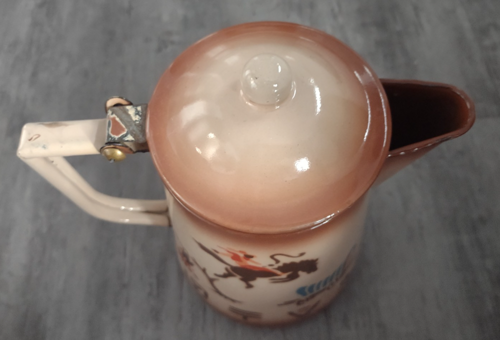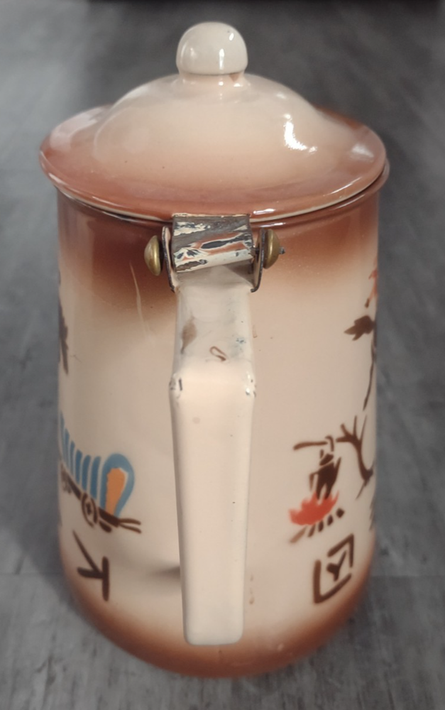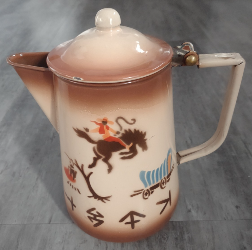 HomeVintage Nasco Western Enamelware Cowboy Bronco Wagon Coffee Pot