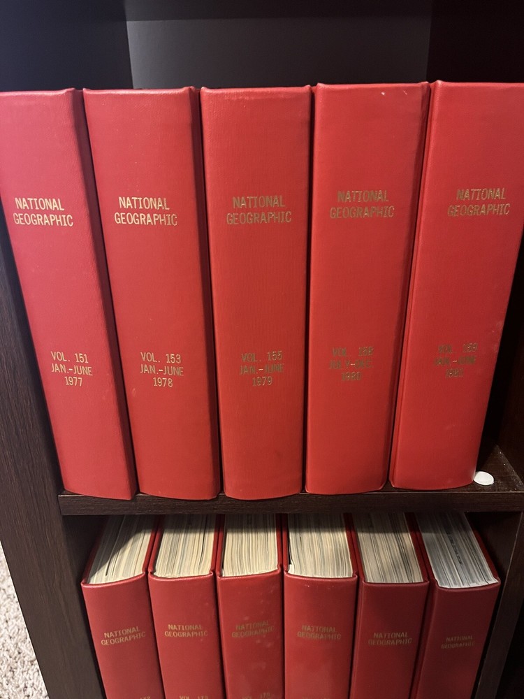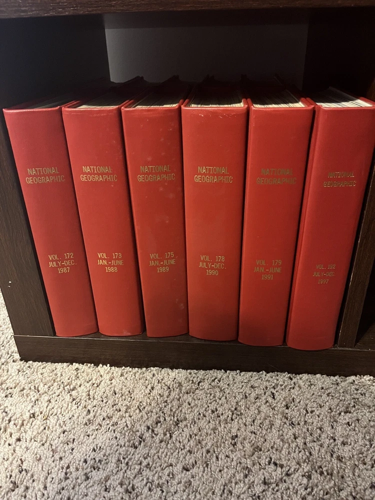Have several hardbound National Geographic books ranging from the years 1966-1977! Each hardbound book contains 6 issues, no maps/inserts. Condition of all is generally good with some being even great. Mostly what will be noticeable will be on the red hardbound itself. The pages themselves are in great shape. These did come from a closed library so there will be several stamps from where it came from, refer to the photos for reference. If you have any questions or want detailed photos of a specific one, feel free to contact me! Thank you!