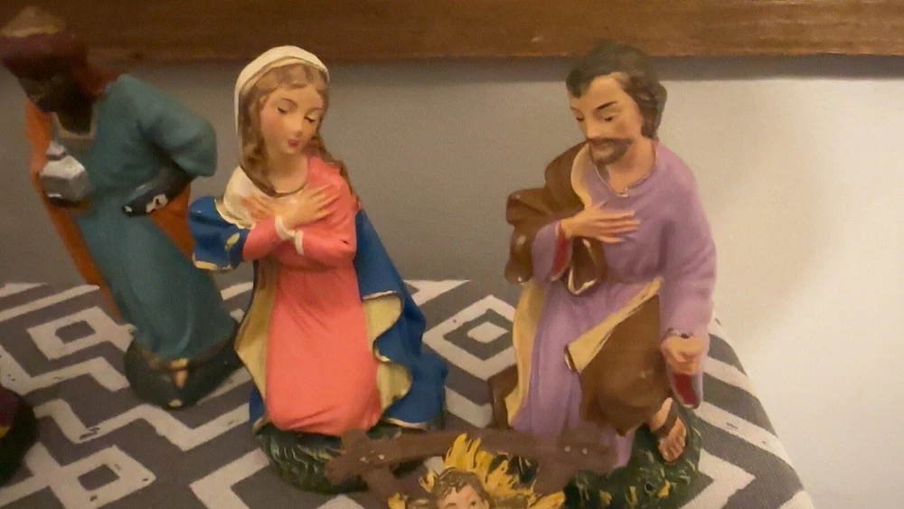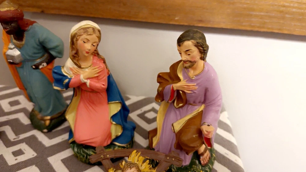 This vintage set of paper mache figurines is sure to add a touch of elegance to your Christmas decor. Crafted in Italy, these large figurines feature intricate details and are perfect for collectors or anyone looking to add a unique touch to their holiday decor. The set includes six figurines, including Marie, Mary, and other subjects, and measures 12 inches in length, 9 1/4 inches in height, and 4 5/8 inches across. These figurines are perfect for anyone looking to add a touch of vintage charm to their holiday decor. Whether you're a collector or just looking for a unique decoration, these paper mache figurines are sure to impress. So why wait? Add this beautiful set to your collection today! Open to reasonable offers, comes from a smoke free home.