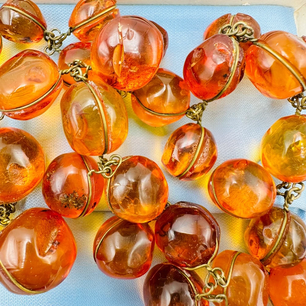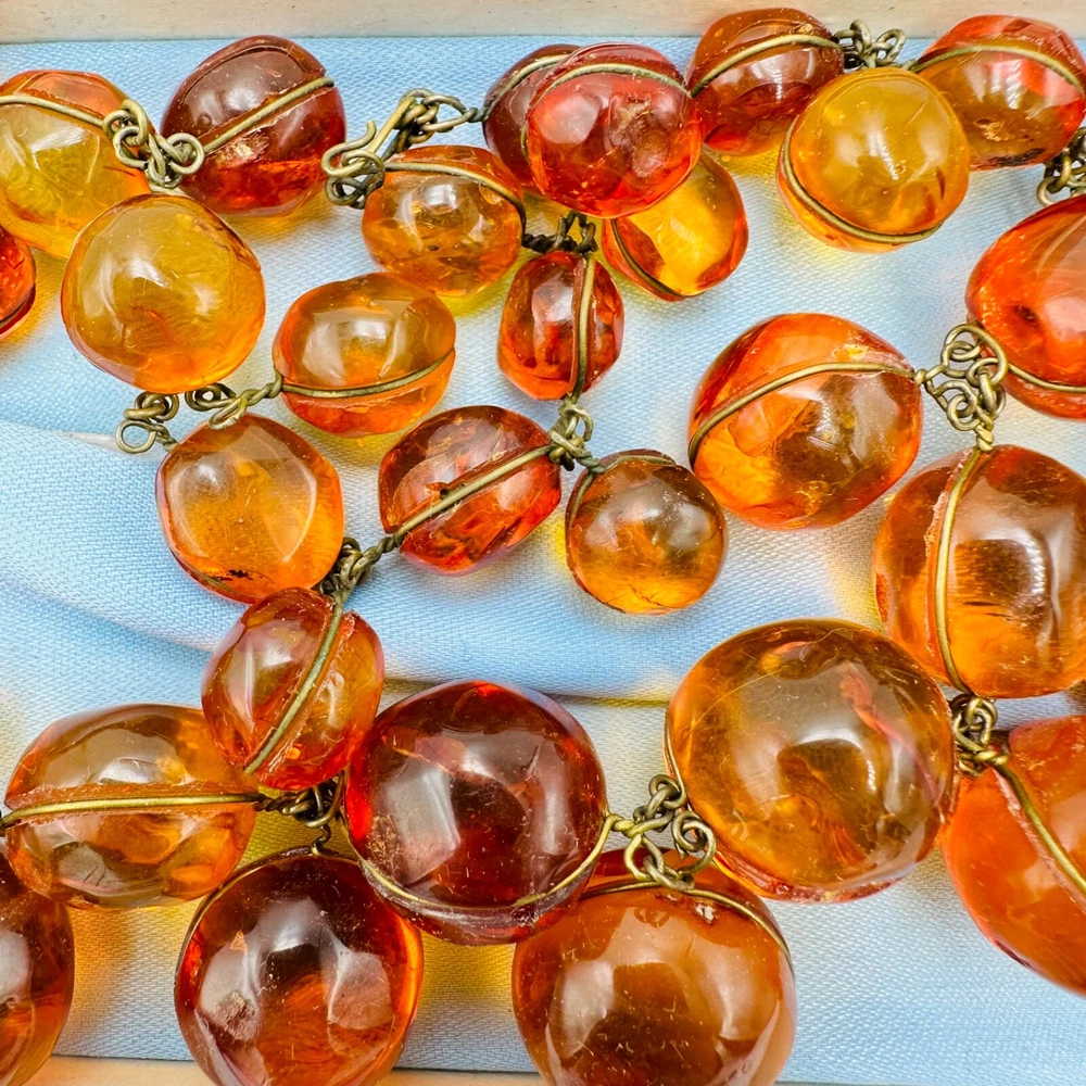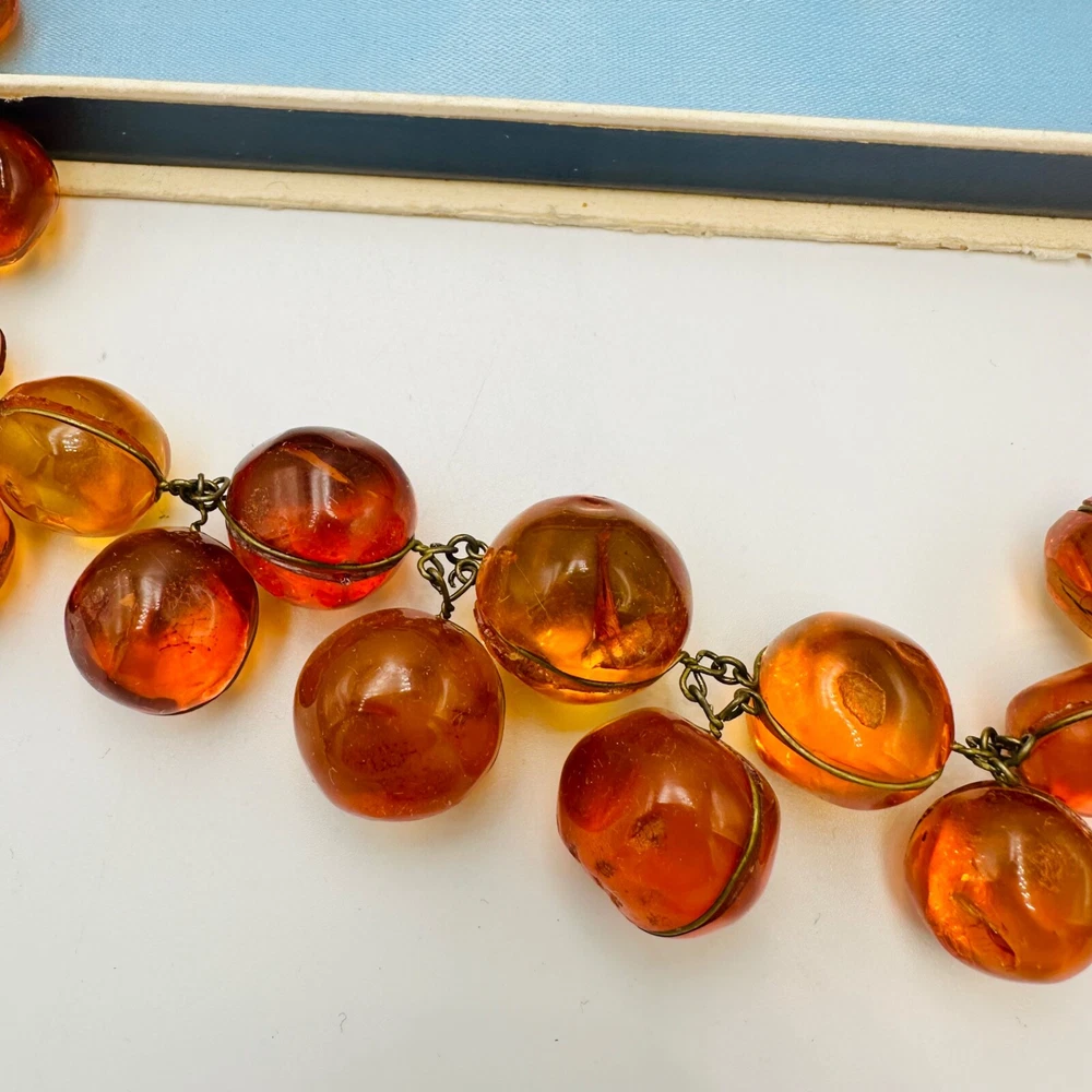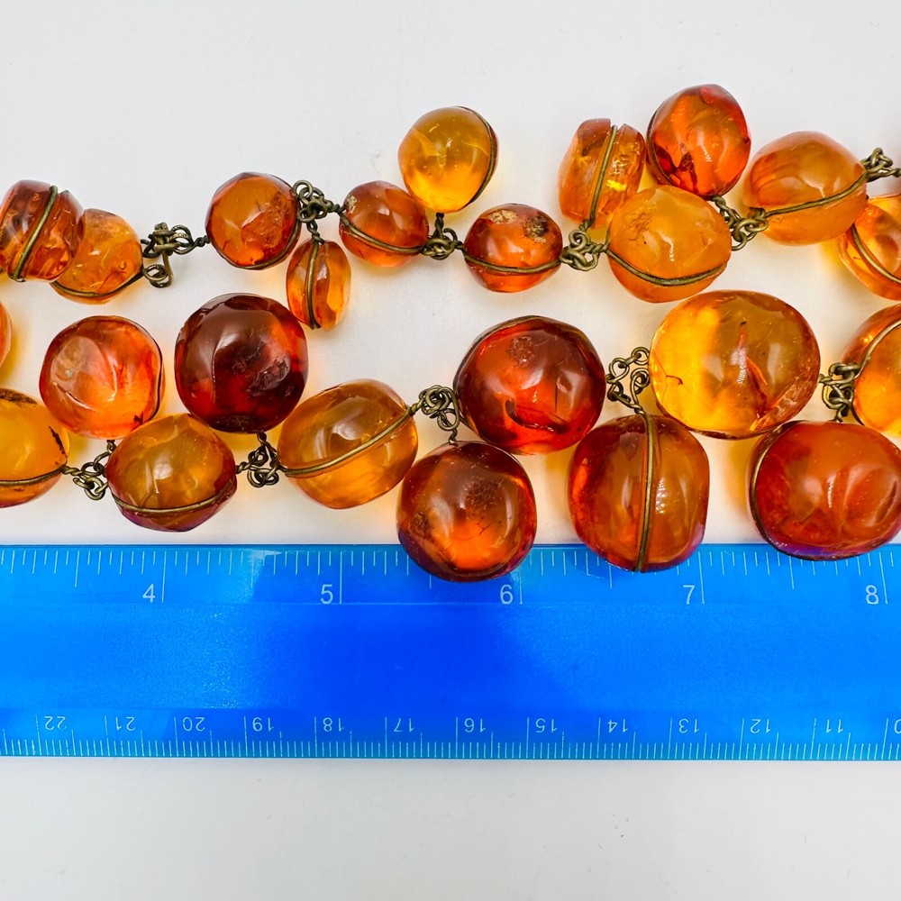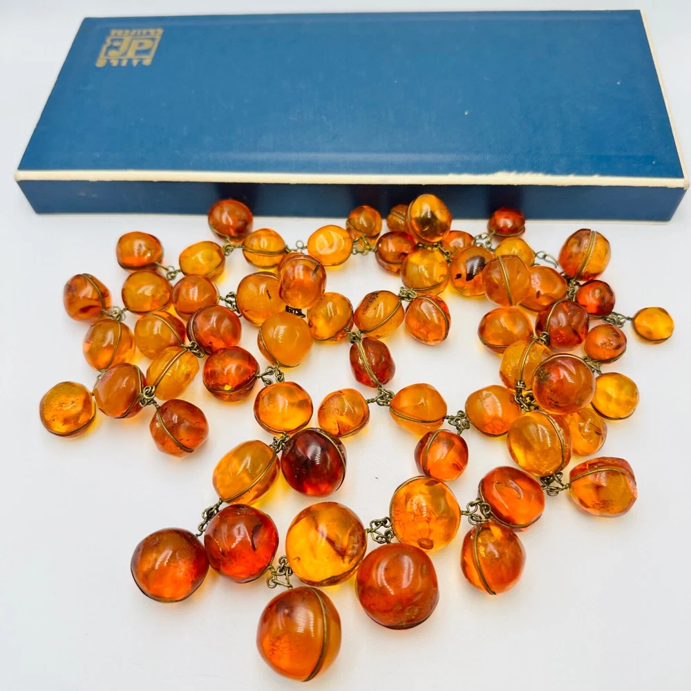 This authentic collectable natural amber beads necklace from the Soviet era is a unique piece of jewelry that will surely catch anyone's attention. The rough-shaped, polished amber beads are strung together to create a stunning 30-inch long necklace that hangs beautifully around the neck. The orange-colored amber beads are natural and have not been enhanced in any way. They are from the Baltic region and were crafted by the Daile Klaipeda Factory in 1960s with original card-box. This rare necklace is a great addition to any jewelry collection and is perfect for those who love vintage pieces. On the surface of the amber beads there are some spots and traces of natural origin, which only confirms the originality and uniqueness of these beads. There are my other items... https://www.ebay.com/usr/universeofjewelry