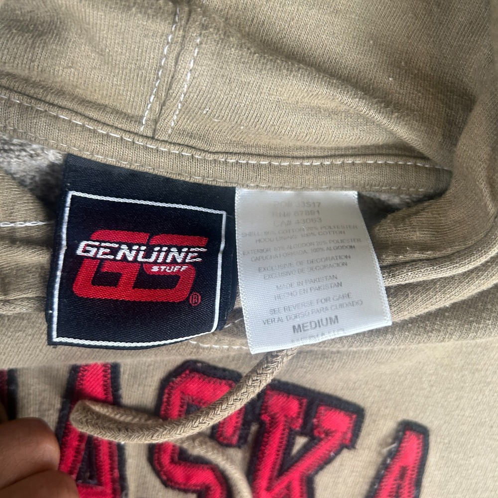 Elevate your game day attire with the Vintage Genuine Stuff Nebraska Huskers NCAA Pullover Hoodie. A must-have for any die-hard fan, this men's size medium hoodie is designed to keep you warm and spirited as you cheer on your team. Crafted in a vibrant green, it features the iconic Nebraska Cornhuskers graphics that showcase your allegiance with pride. Constructed for comfort and durability, this sweatshirt is a product of Pakistan, ensuring quality craftsmanship. Its regular season design is perfect for those chilly evenings, with a 15 oz capacity that traps heat and keeps you cozy. Whether you're at the stadium or on the streets, this hoodie is an excellent addition to your collection.
