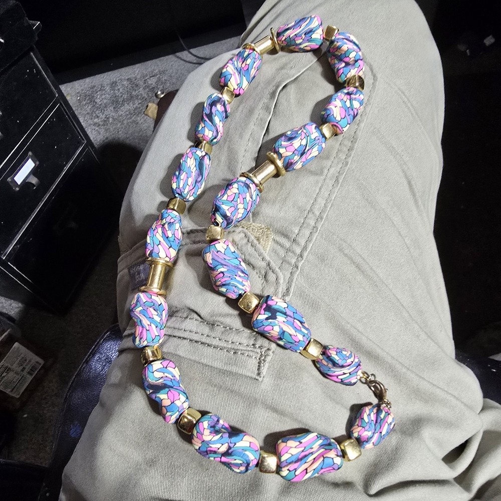 $ 1.77Rare Vintage Signed Elsa Schiaparelli Black & Blue Rhinestone Beaded Necklace
