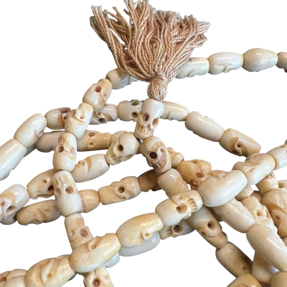 Dear collectors, I am offering a gorgeous piece from my ocean jewels collection! Unusual Vintage Nepal Tibet 106 Prayer Bead Buddhism Bone Skull Meditation Mala Necklace This is a lovely item to own or to give as a special gift. Excellent condition! Length / 144 cm / 56.6 inch Weight / 75 gram Delve into the spiritual essence with this Vintage Nepal Tibet Buddhist 106 Bead Mala Necklace, a sacred accessory for practitioners of Buddhism. Each bead is meticulously crafted, featuring a unique bone and skull design that serves as a constant reminder of the delicate balance between life and the afterlife. Embrace the serenity and profound meaning behind this piece, originating from Nepal - a country rich in cultural heritage and spiritual tradition. The Mala Necklace is an emblem of meditation and prayer, designed to offer comfort and guidance as you embark on your spiritual journey. If you find yourself attracted to it, I highly recommend that you buy it now.
