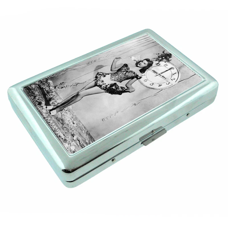 Vintage New Years Eve D13 Silver Metal Cigarette Case RFID Protection Wallet
