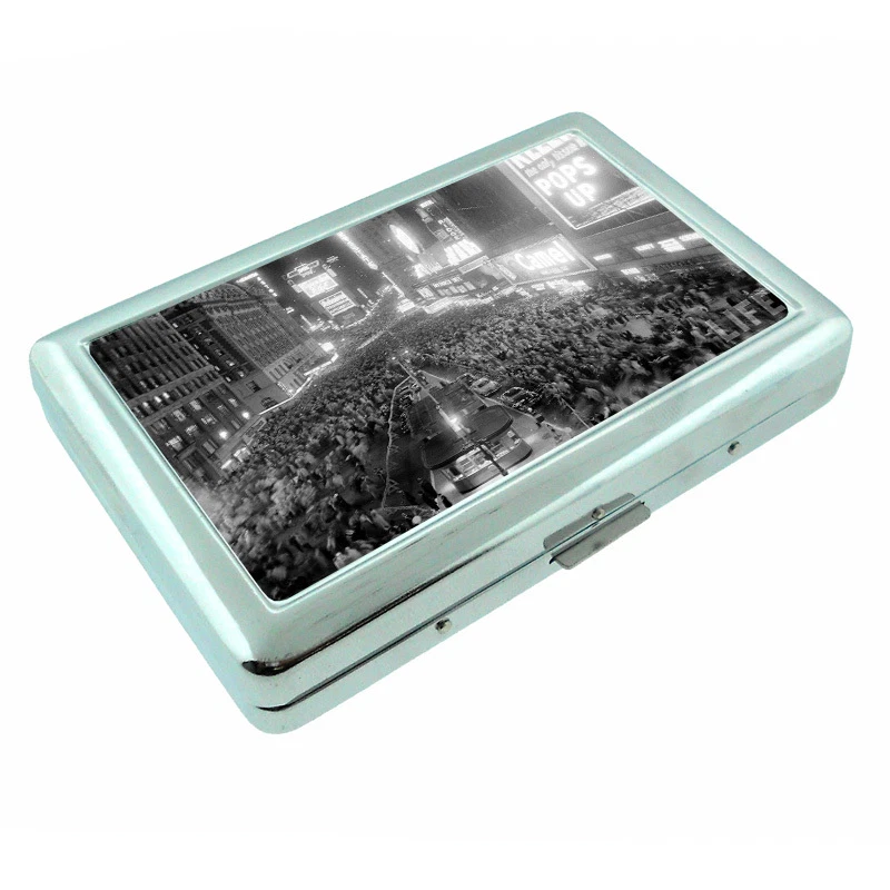 Vintage New Years Eve D9 Silver Metal Cigarette Case RFID Protection Wallet