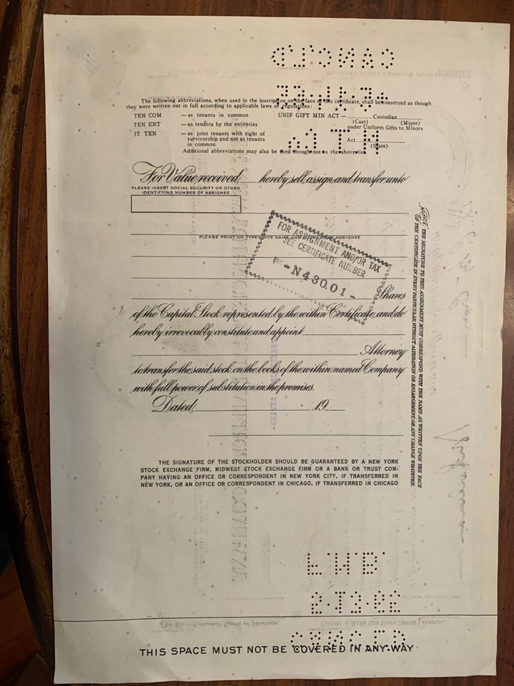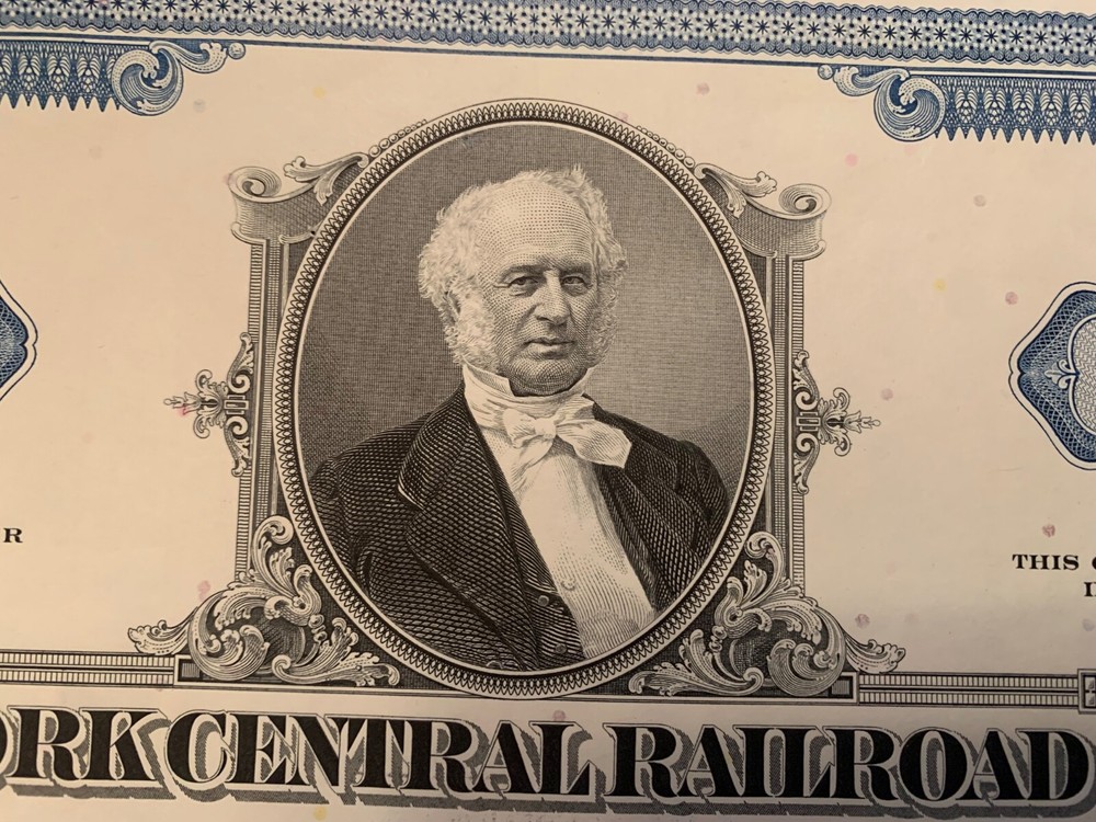 Size 12" x 8". Clean stock certifcate with even borders. Never folded. Two colors Blue and Black. Picture of Cornelius Vanderbilt, 1794-1877. Issued October 7, 1964, canceled May 13, 1965. Printed by American Bank Note Company.