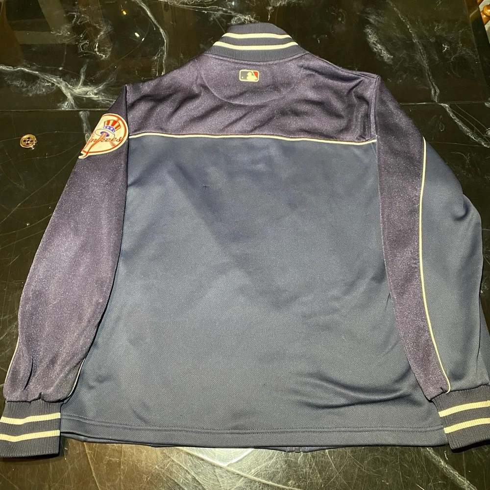 Vintage New York Yankees Authentic Magestic brand track jacket. Size L. Features Ny Yankees logo on front of jacket, Yankees logo on left shoulder, and majestic branding on zipper and right sleeve . Great condition some staining on shoulder logo could come off with an oxy. No pinholes, rips or tears . #Yankees #MlbJacket #Nyyankeejackey #Vintage