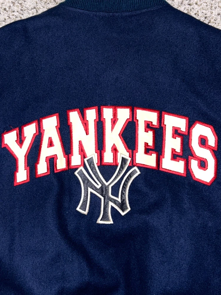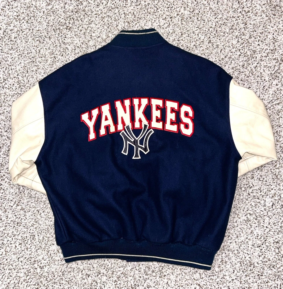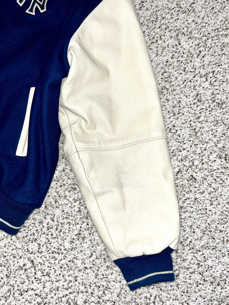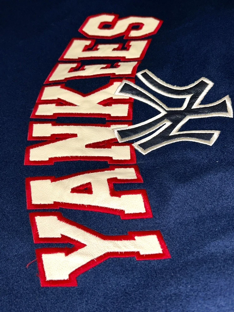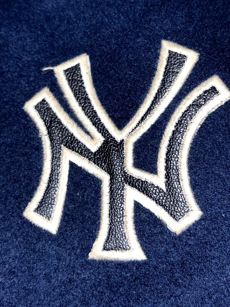 In excellent pre-owned condition lightly worn. Has some wear such as a small black mark on sleeve as shown in photos but no other serious flaws. Men’s size XL and fits true to size. Features leather Yankees logo embroidery patch on front and cool leather spellout embroidery on backside. Has leather sleeves. 100% authentic. Sold as is.