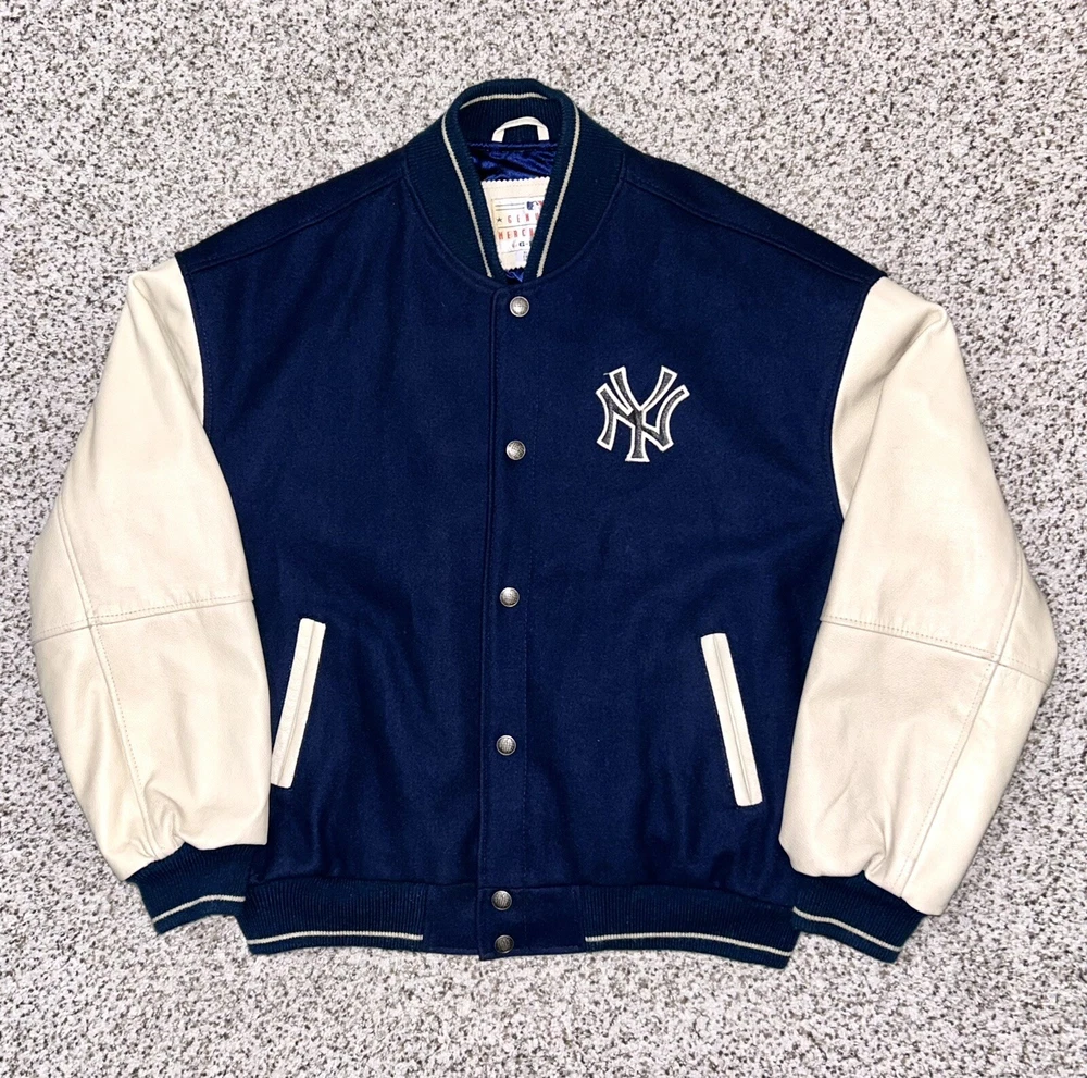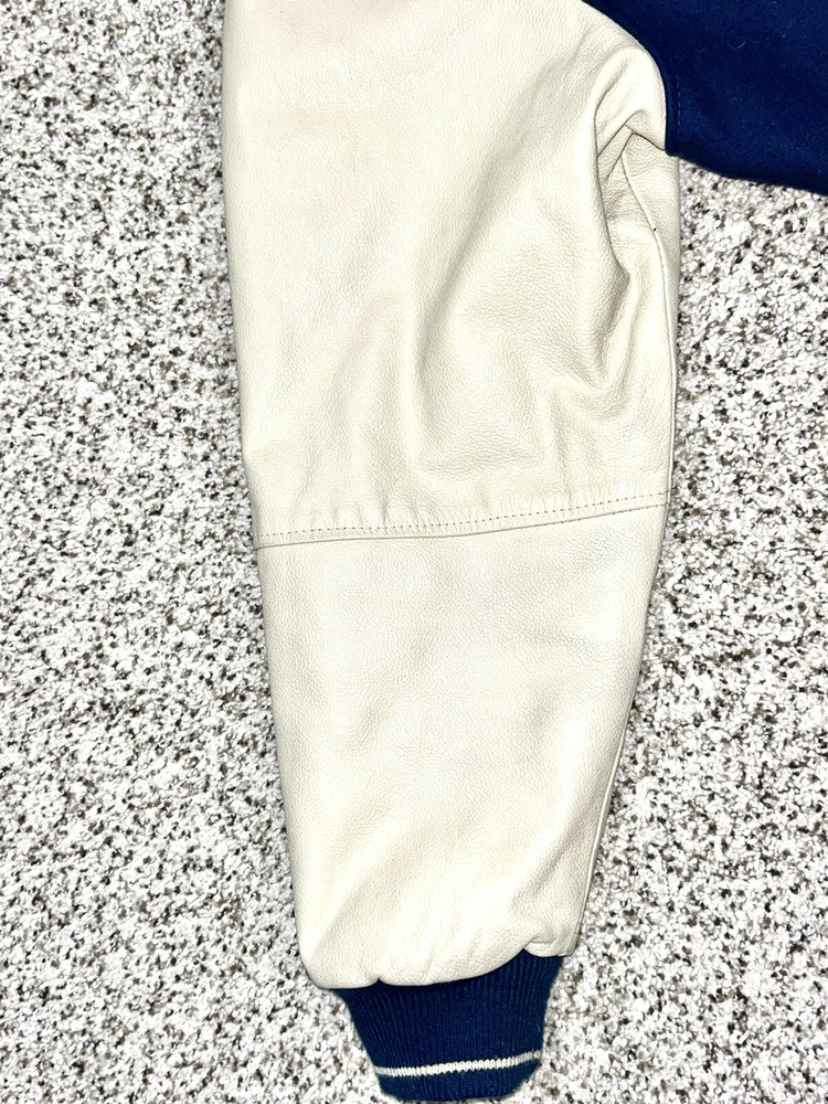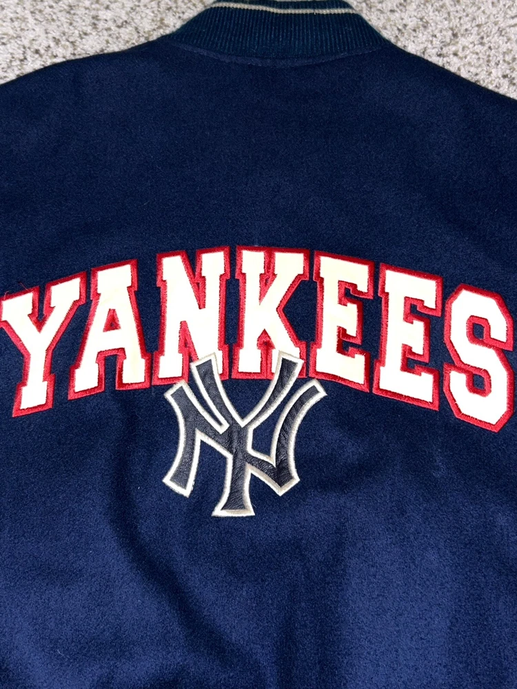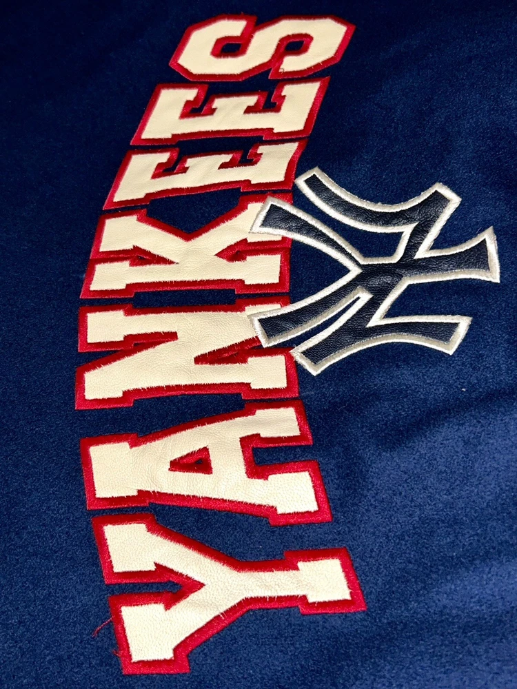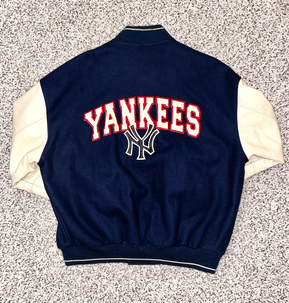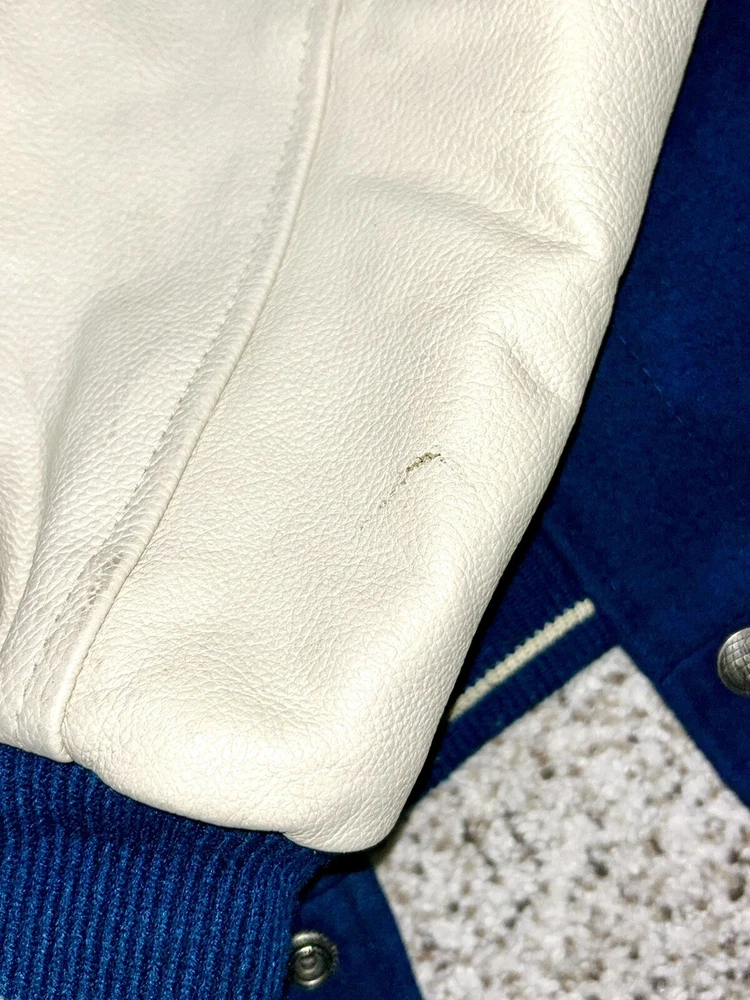 In excellent pre-owned condition lightly worn. Has some wear such as a small black mark on sleeve as shown in photos but no other serious flaws. Men’s size XL and fits true to size. Features leather Yankees logo embroidery patch on front and cool leather spellout embroidery on backside. Has leather sleeves. 100% authentic. Sold as is.