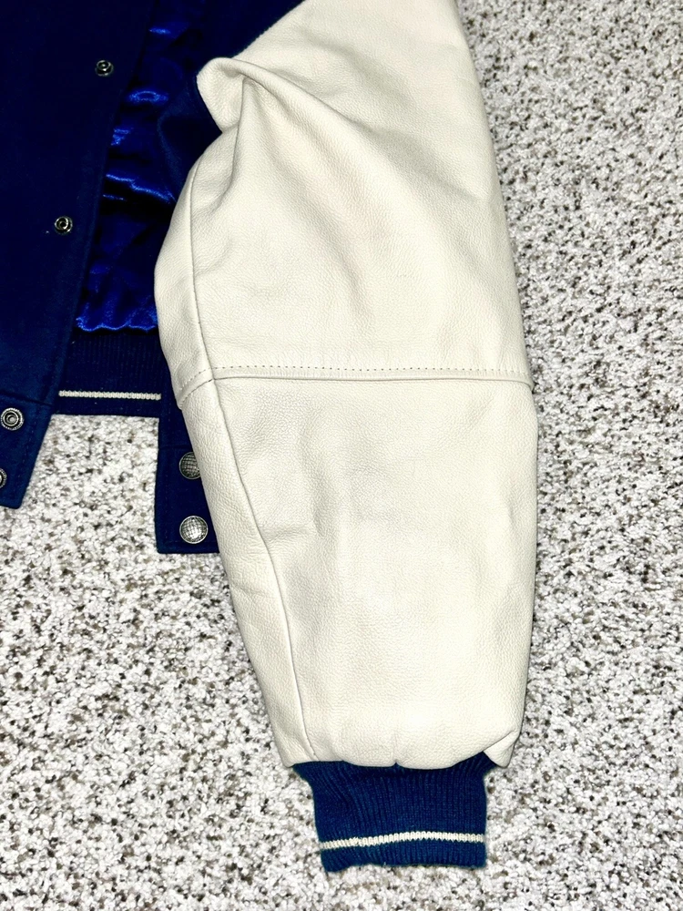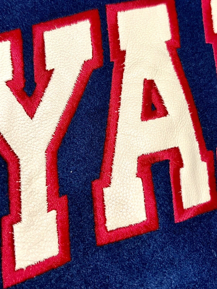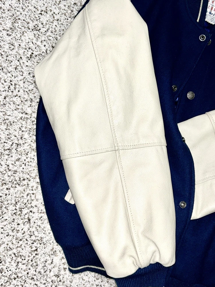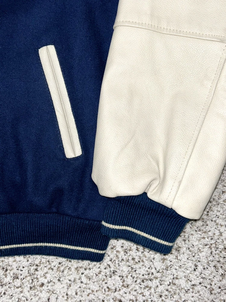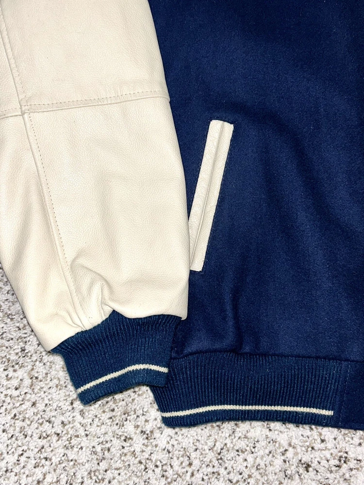 In excellent pre-owned condition lightly worn. Has some wear such as a small black mark on sleeve as shown in photos but no other serious flaws. Men’s size XL and fits true to size. Features leather Yankees logo embroidery patch on front and cool leather spellout embroidery on backside. Has leather sleeves. 100% authentic. Sold as is.