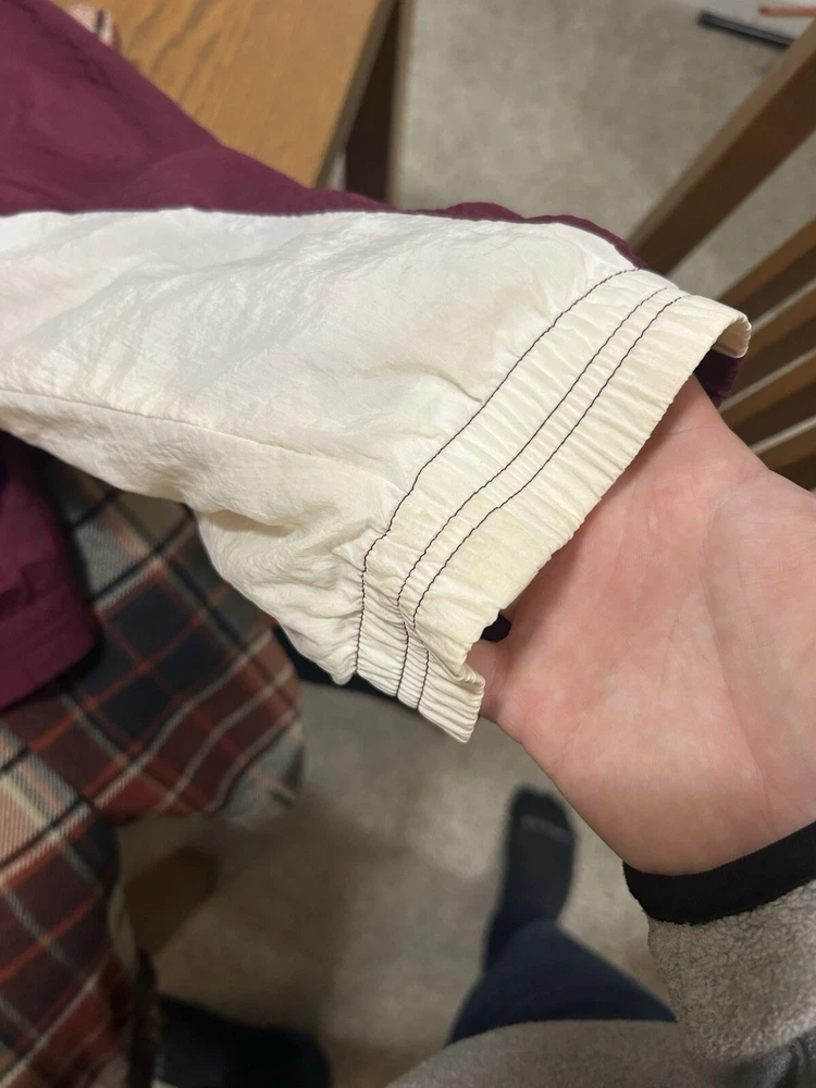 Vintage Nike 90s Windbreaker Jacket One of a kind vintage Nike jacket! Rare coloring/pattern design. Its an XL but fits like a loose large, great for layering and oversized fits. In almost perfect condition. Has two almost invisible holes on back at the very bottom (see pictures) white around wrists as shown in pictures as well.