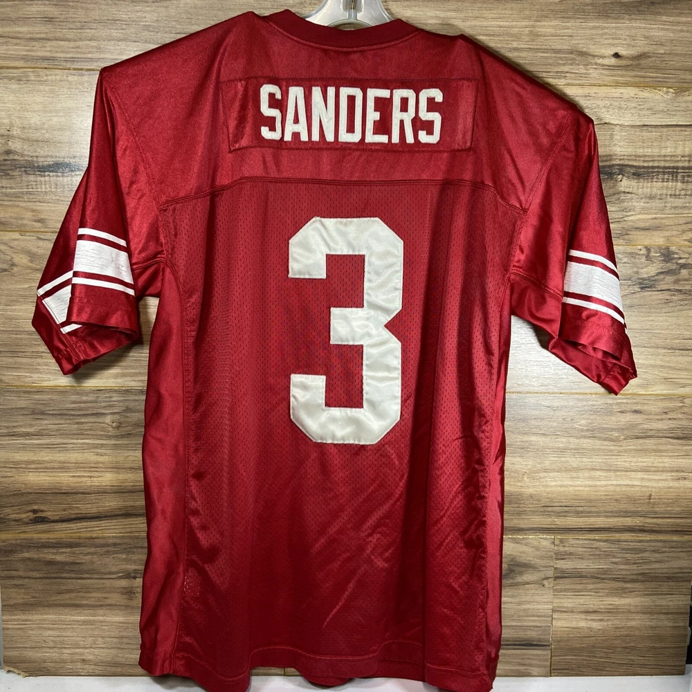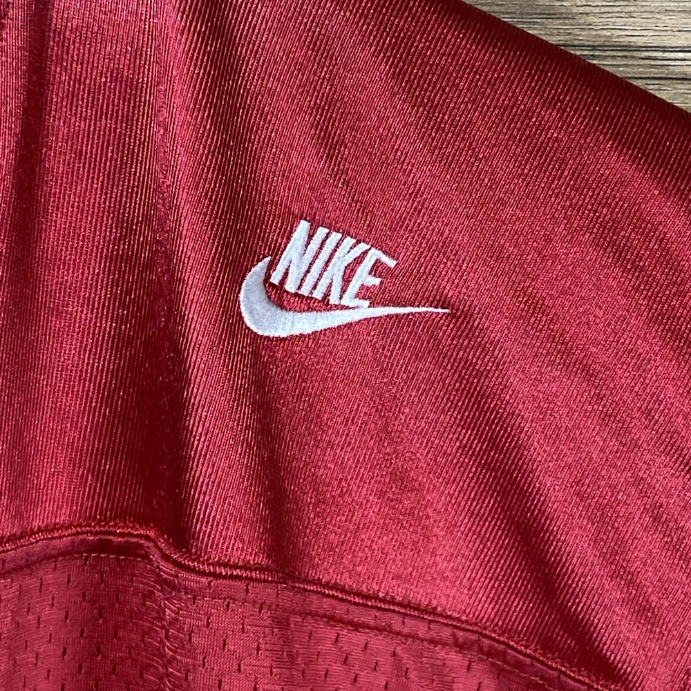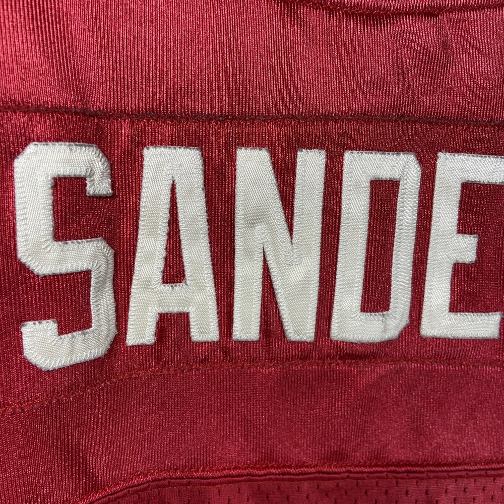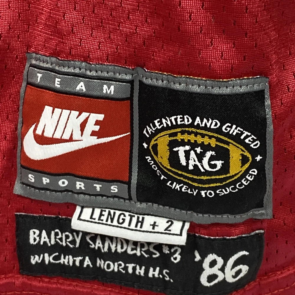 This vintage Nike Barry Sanders High School Jersey is a must-have for any Detroit Lions fan. The jersey is officially licensed by the Nike and features the team's iconic colors of red and white. The size is 2XL, making it ideal for men who want to show their support for their favorite team. The jersey is made in Honduras and is in great condition, perfect for any collector or fan. Get your hands on this authentic piece of fan apparel today. Condition is pre-owned; item has been cleaned per manufacturer instructions tag. Measurements are 25” Pit-to-Pit and 32” Neck-to-Hem. Shipped with USPS Ground Advantage.