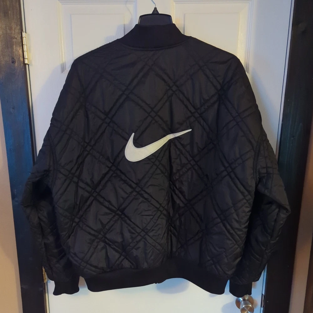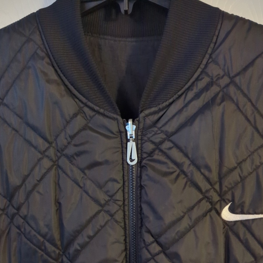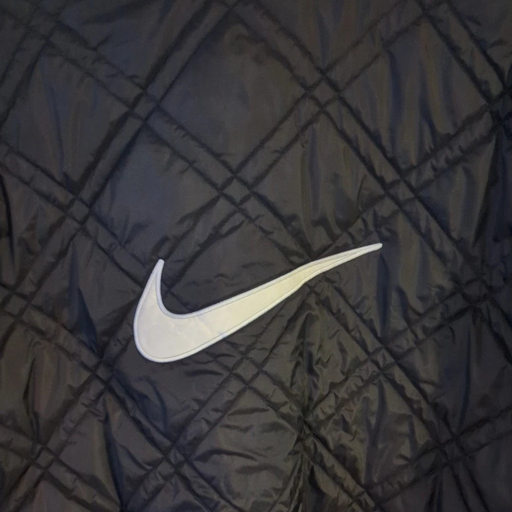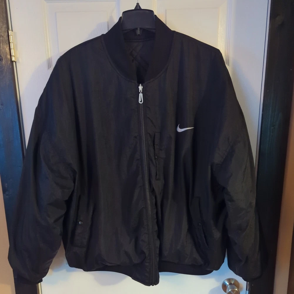 Beautiful Condition. Please see the pictures for the best description and feel free to ask questions. Thank You for looking! This Men's Vintage Nike Black Reversible Quilted Bomber Puffer Coat Jacket in size XXL 2XL is a stylish and versatile outerwear piece suitable for various occasions such as travel, parties, or casual wear. Made with nylon outer shell material and nylon lining, it provides warmth and protection during the winter, fall, and spring seasons. The bomber style jacket features a zip closure, band collar, and embroidered Nike logo accents, adding a touch of retro sports-inspired flair to the classic design. Perfect for those who appreciate a blend of retro and modern style in their wardrobe.