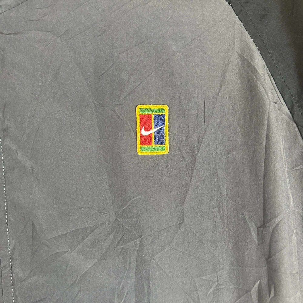 Embrace the retro vibe with our Vintage Nike Court Full-Zip Band Embroidered Windbreaker. A true 90s gem, this men's medium jacket combines functionality with classic style, featuring a bold multicolor design that's sure to stand out. The durable polyester microfiber construction ensures a lightweight yet resilient barrier, perfect for a range of activities from running to casual outings. Equipped for all seasons, the jacket boasts a full zip closure, a comfortable band collar, and is machine washable for easy care. The embroidered Nike Air logo adds a touch of prestige to the relaxed-fit jacket, which is ideal for travel, workwear, or casual wear. Whether you're hitting the tennis court or just enjoying a brisk jog, this jacket's cotton lining and insulation offer warmth without the bulk. SKU: 24 0005