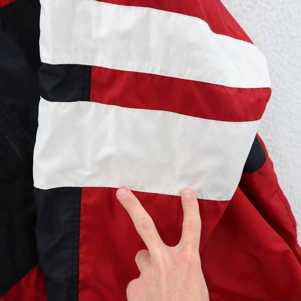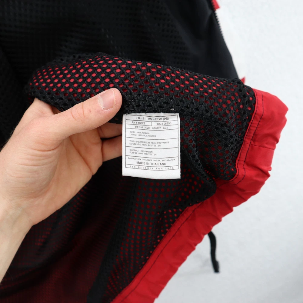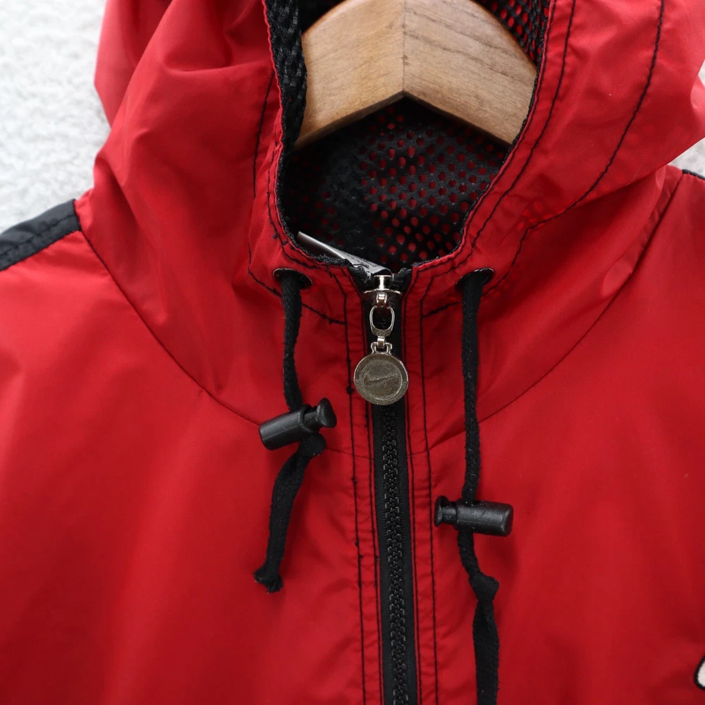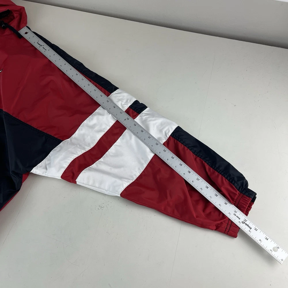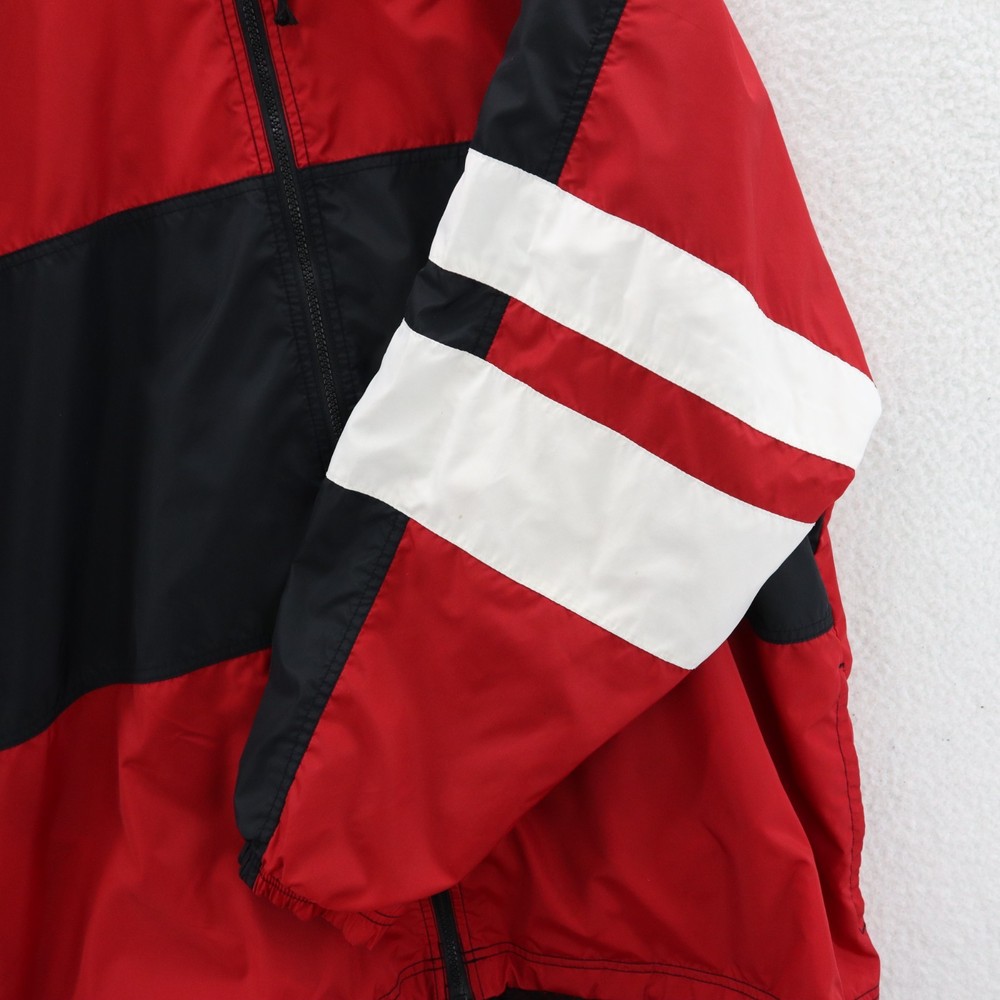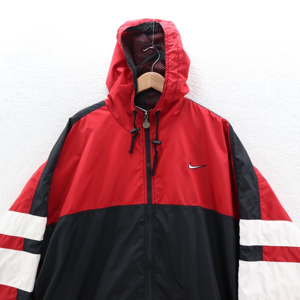 Vintage Nike Jacket Men's Red 90s White Tag Colorblock Swoosh Sports Streetwear This item is in pre-owned condition and therefore may show signs of previous use, such as small stains, holes, or other wear. Please view all of the items photos as any defects will be documented there. Sizing in the title and item specifics are based on what the tag says. Measurements can be seen in the photos.