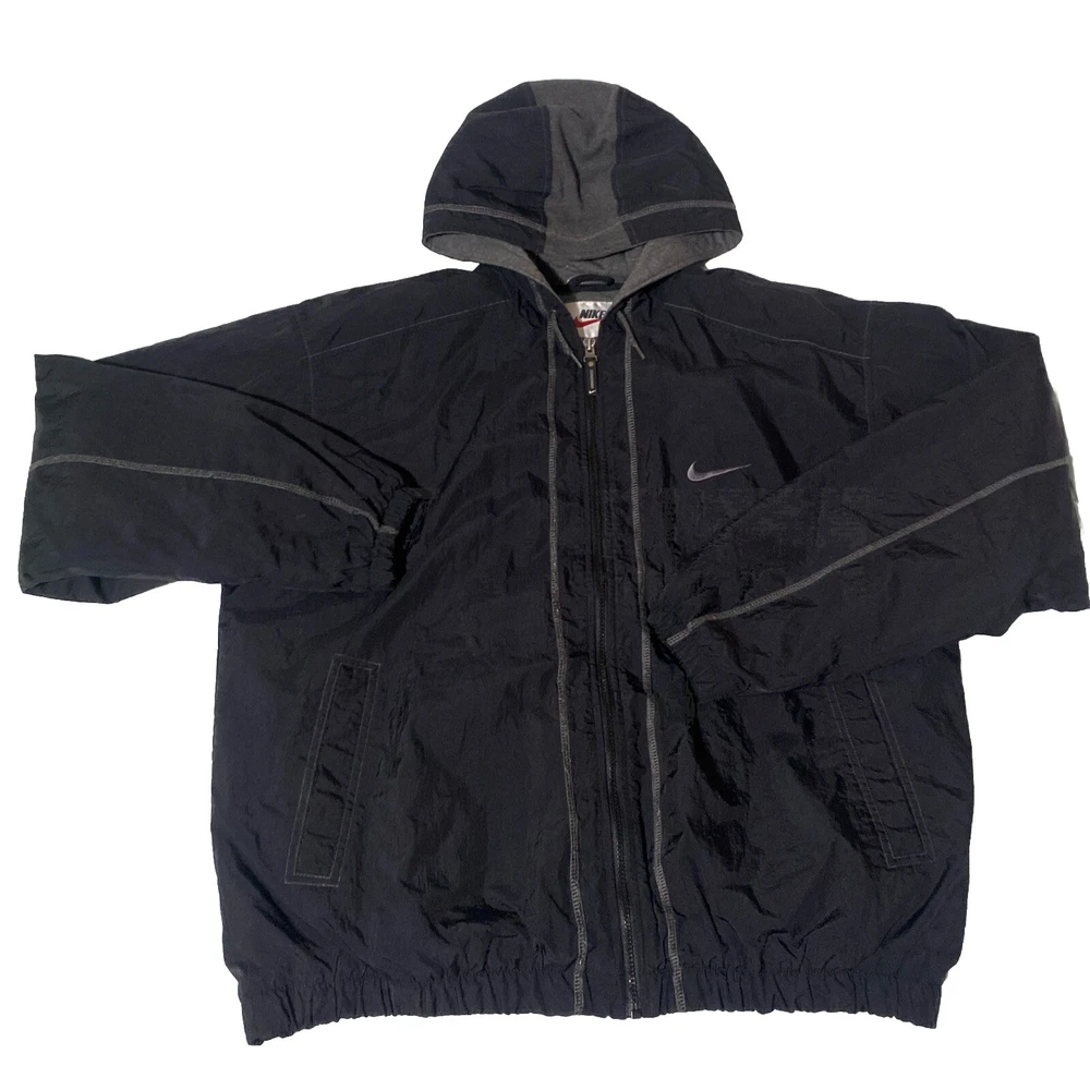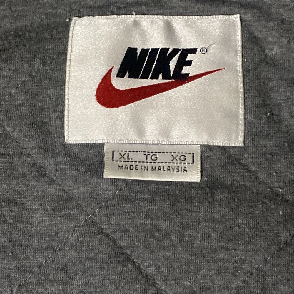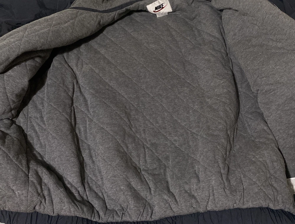 Vintage Nike jacket. Big swoosh on back, embroidered. Size XL. Black with gray accents. No holes or stains.