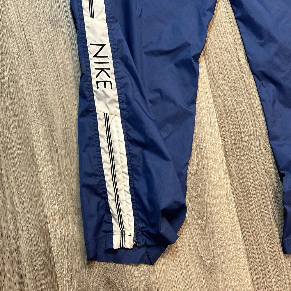 Vintage Nike tracksuit pants Men’s size XL Blue with white stripes on side. Zip ankles. Drawstring at waist. Very good used condition Fast and secure shipping daily