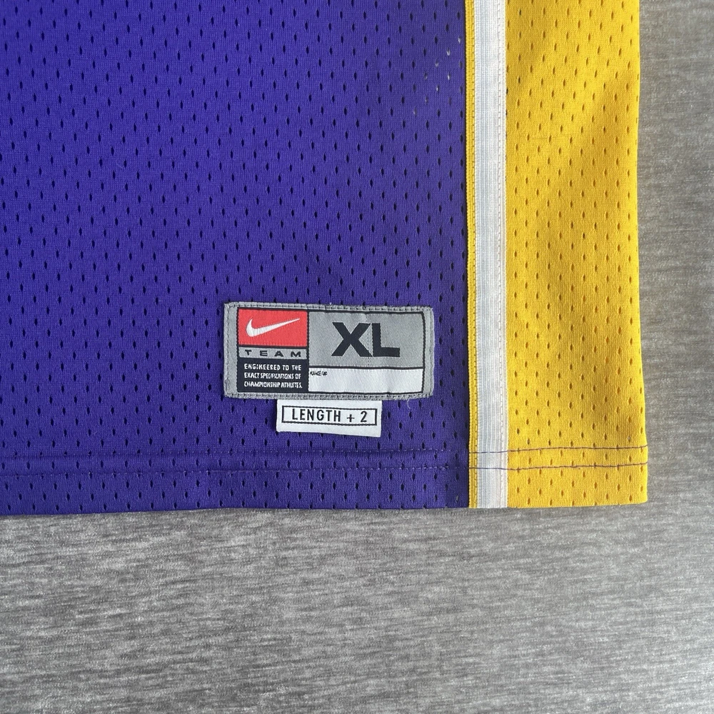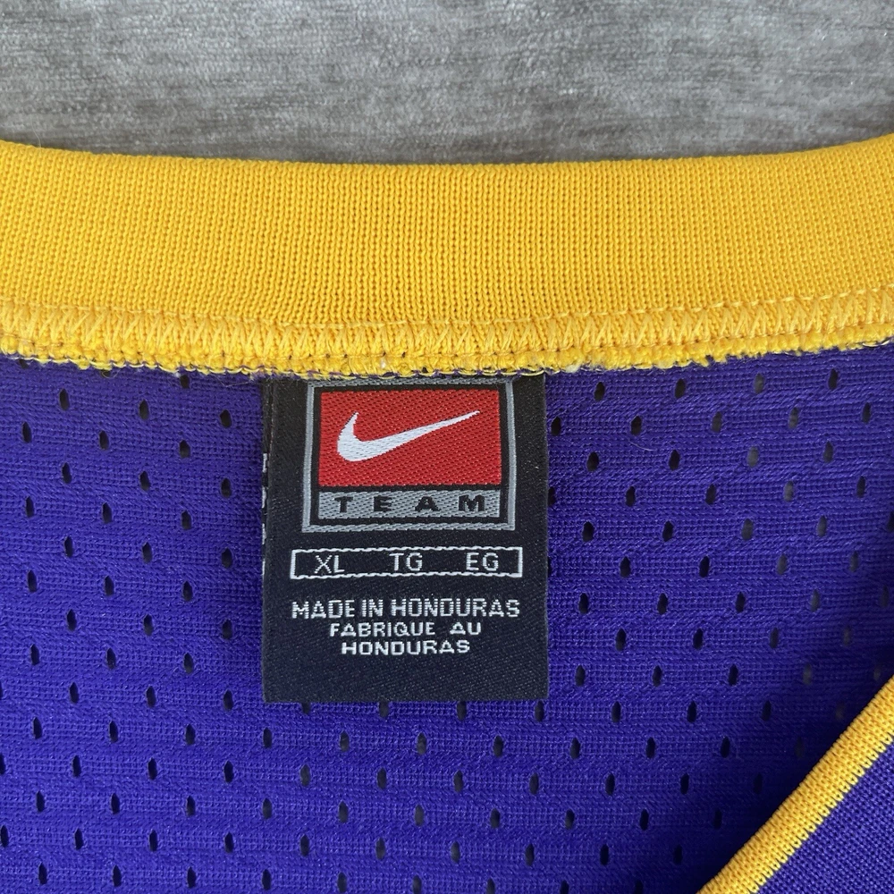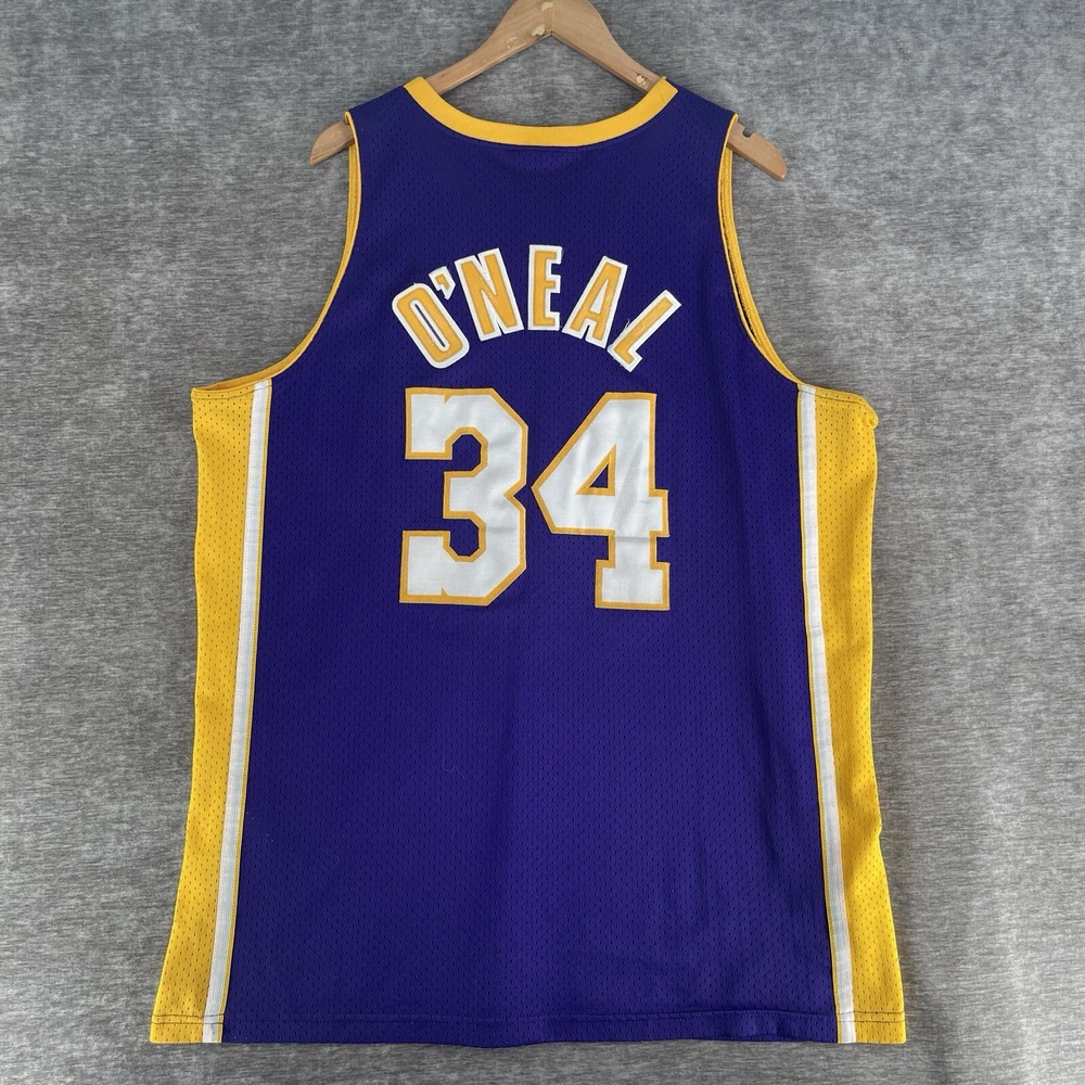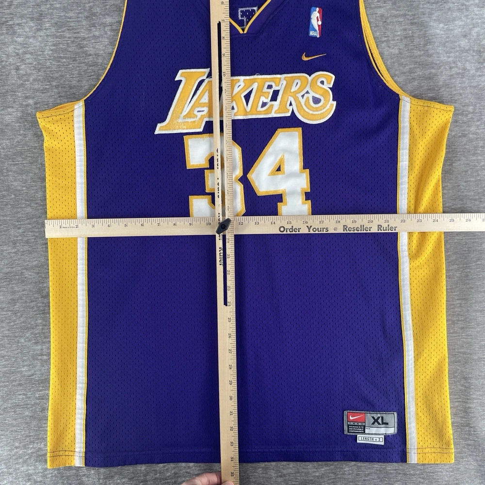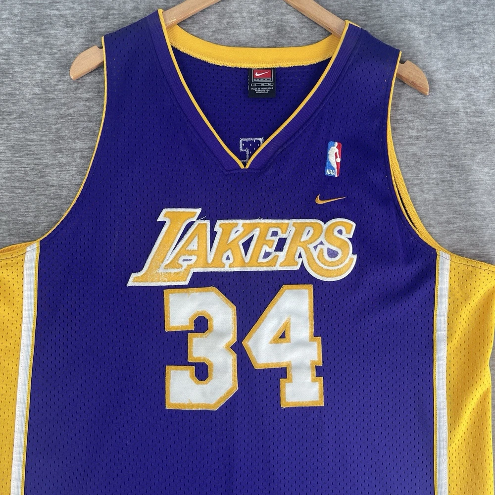 Embrace the nostalgia of the NBA with this vintage Nike Swingman Los Angeles Lakers jersey, featuring the legendary Shaquille O'Neal. The vibrant purple hue is instantly recognizable as the iconic team color, making it a standout piece for any Lakers enthusiast. Sized XL, this jersey offers a comfortable fit for most, allowing fans to celebrate their team's history with ease. Crafted with breathable fabric, this jersey ensures you stay cool during intense basketball games or while hitting the streets in style. As an officially licensed NBA product, you can trust in its authenticity, adding credibility to your collection. Whether you're engaging in a pickup game or just showing off your Lakers pride, this jersey is a versatile addition to any fan's wardrobe. RARE