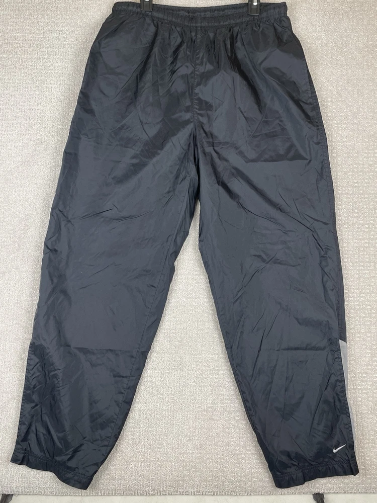 Closure: Drawstring Brand: Nike Size Type: Regular Color: Black Theme: 90s Size: 2XL Style: Track Pants Type: Pants Features: Lined Department: Men Fabric Type: Blended Fabric Seller Notes: “A couple of scuffs on the fabric, see the photos.” Occasion: Activewear