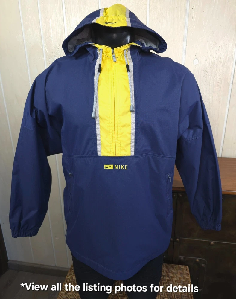 An Incredible one time opportunity to own this collector Vintage Nike Windbreaker Jacket Zip Hooded Pullover Men's Size M 90s Y2K ***See last photos for shell seam open on side 2-1/2 in ***PIT TO PIT IS 25 in ***AS IS **NO RETURNS ***VIEW ALL MEASUREMENT PHOTOS FOR PROPER FIT**** Explore the in depth photos showing every angle possible as if you have it in your hands. Thank you from all of us at DPACTIVEXPRESS ***Note 1: Display stands not included with all items unless specifically stated in the title. ****Note 2: DPACTIVEXPRESS carries a diverse collection of brands in this category, so we take a pit to pit measurement photo. ~~~~~~~ITEM IN THE LISTING PHOTOS IS THE ITEM YOU WILL RECEIV