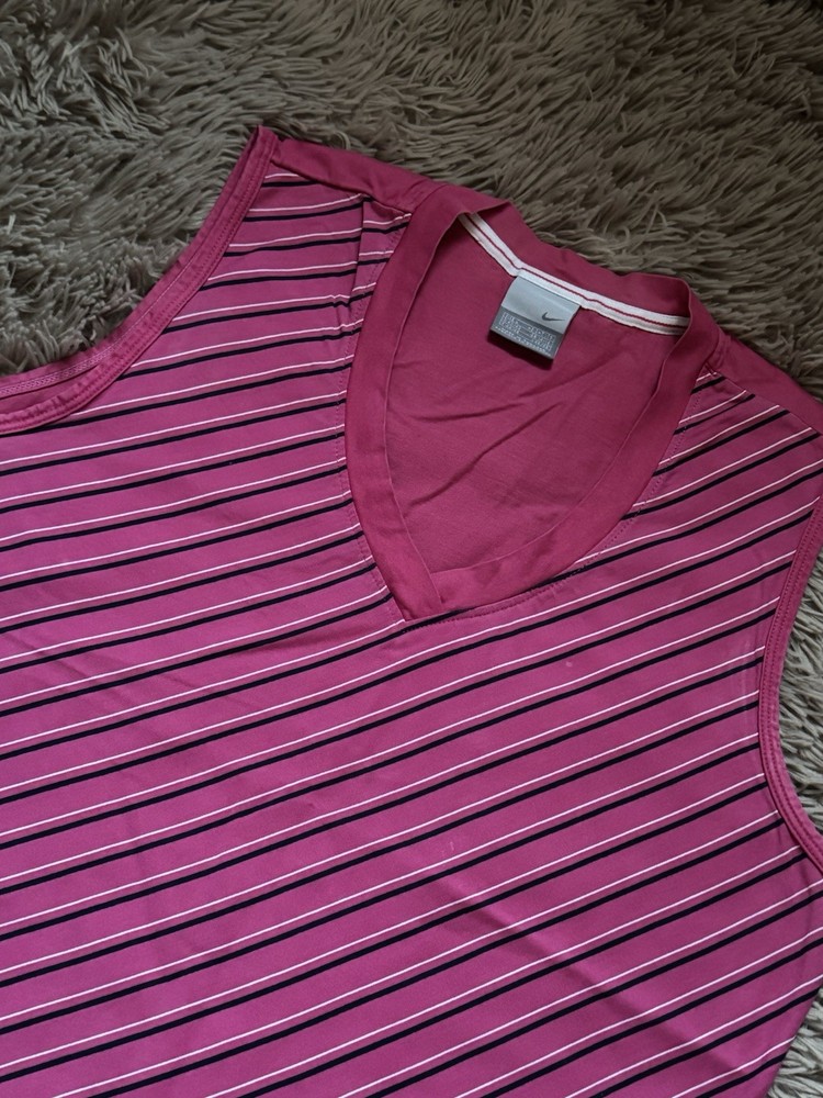 Authentic vintage Nike women’s sleeveless top 🌸 Lovely pink color with diagonal stripes and a flattering V-neck. Lightweight and comfortable — perfect for summer, workouts, or everyday casual wear. ▫️ Size: L (fits more like M) ▫️ Condition: Very good, no flaws ▫️ Brand: Nike (original) Please check photos and feel free to message me with any questions 😊