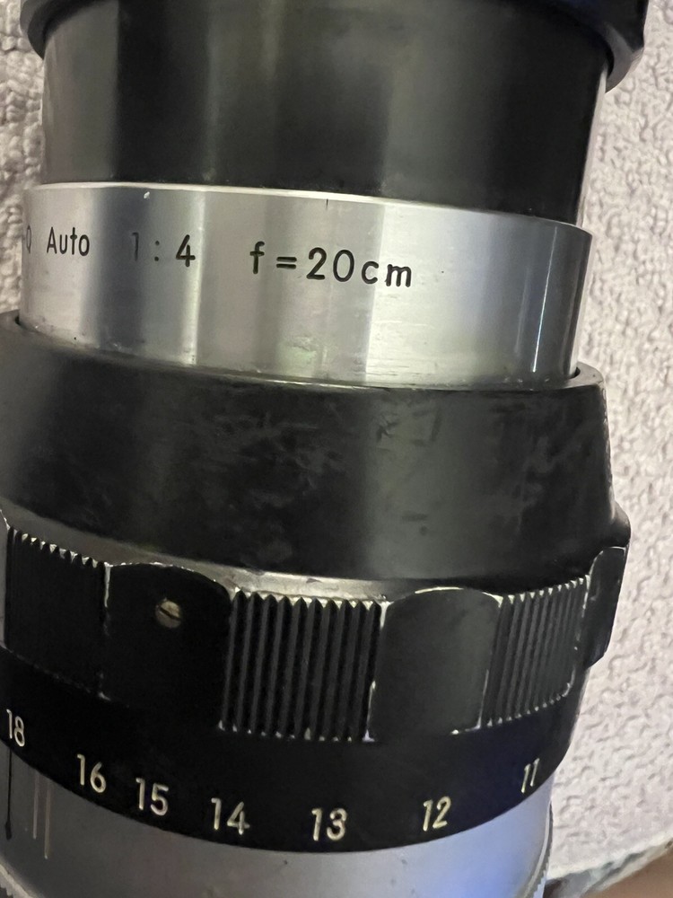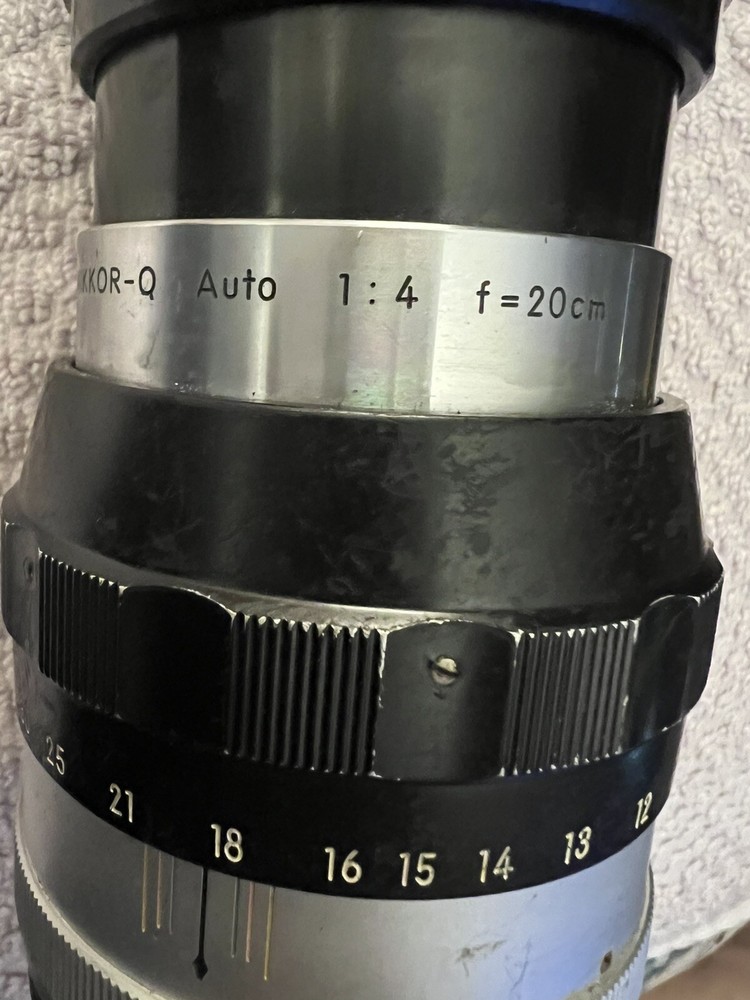 The product is a vintage Nippon Kogaku Nikkor Q Auto 1:4 f=20 cm lens designed for Nikon cameras. With a focal length of 200mm and a maximum aperture of f/4, this telephoto lens is suitable for capturing distant subjects with clarity and detail. It features an auto focus system and belongs to the Nikon 1 NIKKOR series, ensuring compatibility and quality performance with Nikon camera bodies. Made in Japan, this NIKKOR lens reflects a legacy of craftsmanship and precision in optics.Preowned some blemishes