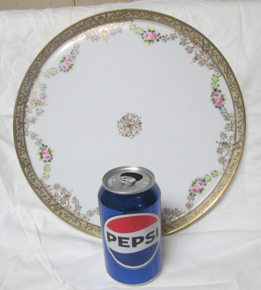 This is a vintage Nippon round flat cake plate in excellent condition. No chips, cracks, or crazing. No wear to the heavy gold trim. It has garland with roses and is 12in. across. It is marked with the cherry blossom mark. GREAT item to add to your collection, decor or existing set. Thanks for looking.