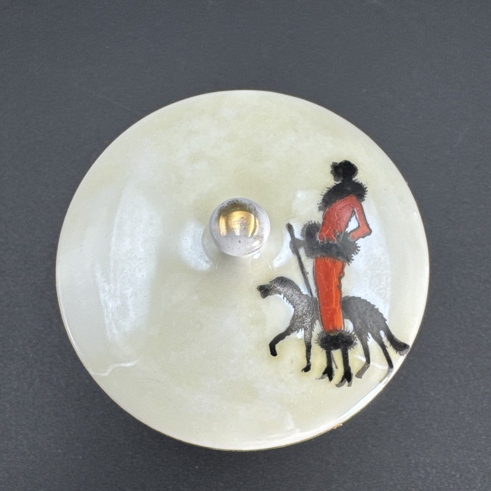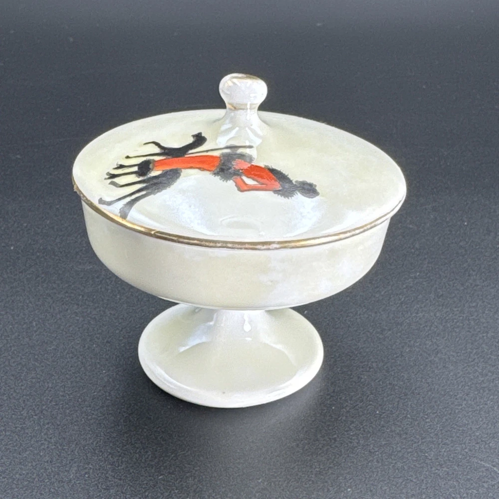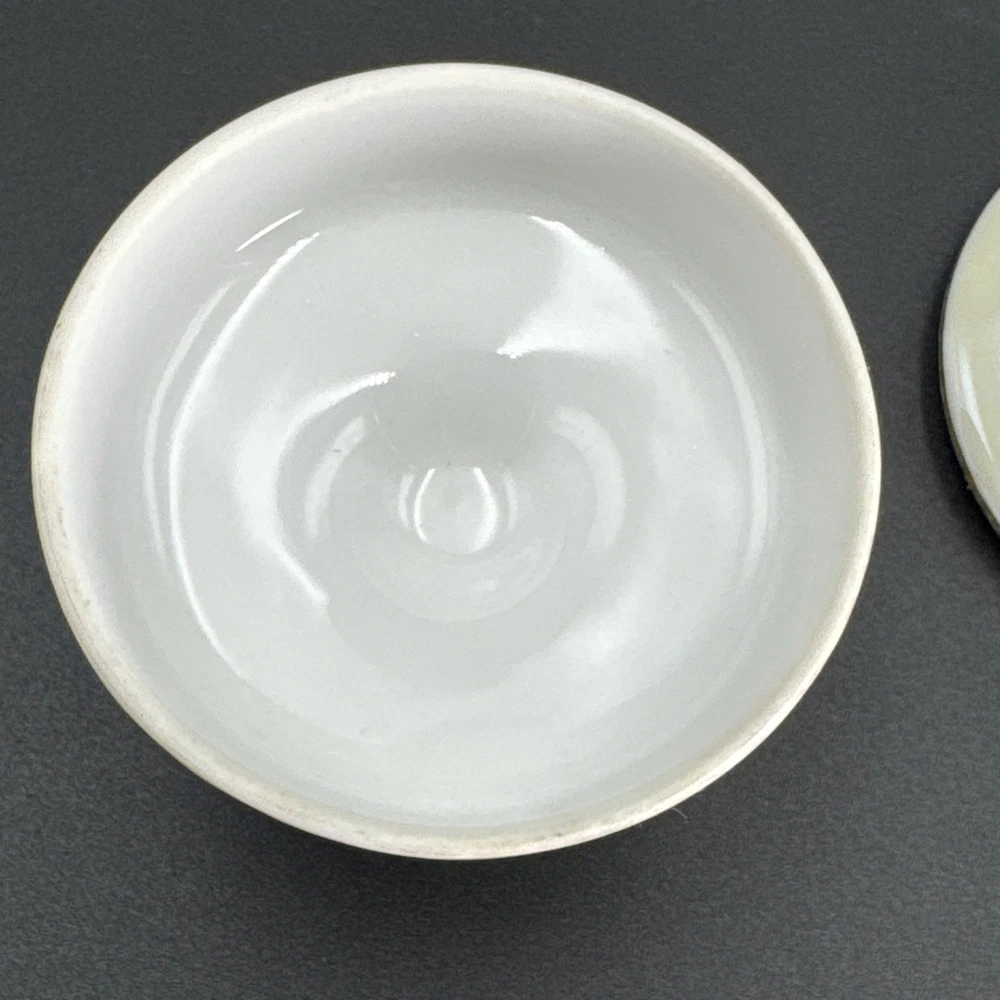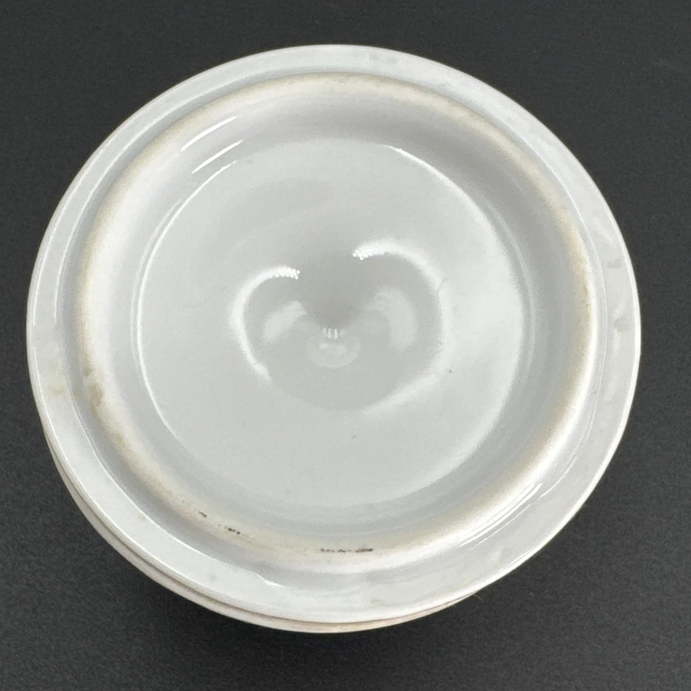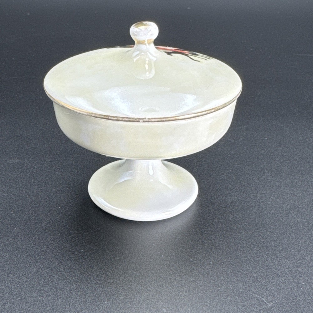 Preowned item in good condition. Color appears to have yellowed or darkened. Gild worn on knob handle and edges of lid. No chips, cracks or repairs. Dated by backstamp. Check Photos closely for condition and details. Packed carefully for shipping. We reuse clean packaging materials. Priority Mail Recommended! Items usually packed and shipped same day or next day (Business Days).