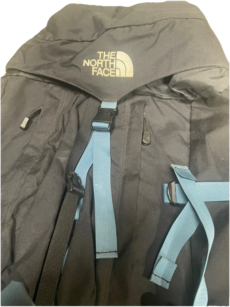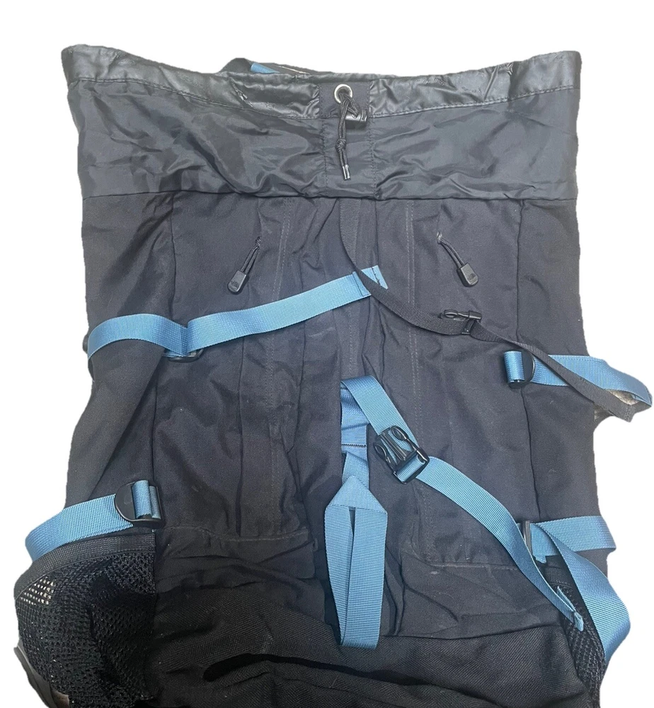 Vintage North Face Black Top Load Backpack 55 - 60 Liter Reg. Ski Hike Mountain in good used condition, shows the usual wear.