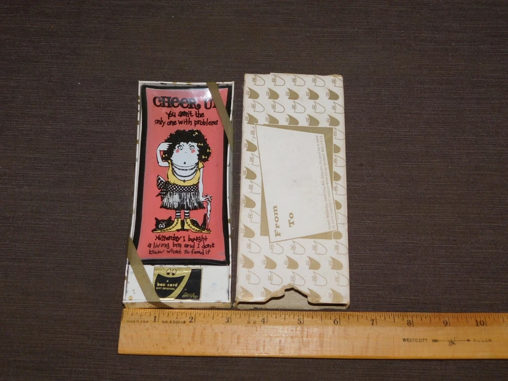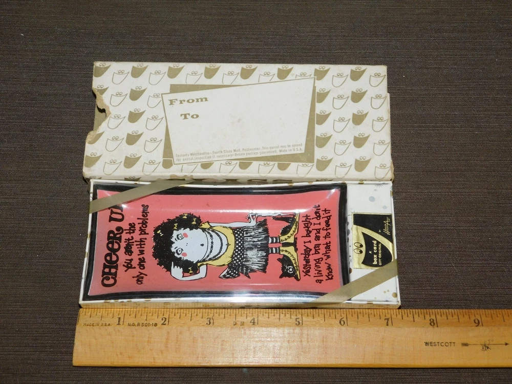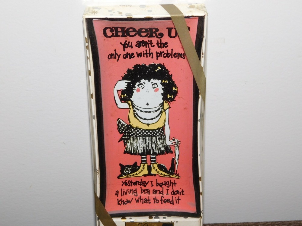 YOU ARE BIDDING ON............... .. VINTAGE NOVELTY GAG GIFT FUNNY CHEER UP LIVING BRA GLASS DISH TRAY NEW NOS ....MEASURES APPROX 6" X 2 3/4"..SHIPPING BOX SHOWS A LOT OF WEAR..HAS TEARS/AGE DISCOLORATION......PLEASE VIEW PHOTOS FOR CONDITION.***PLEASE E-MAIL IF YOU HAVE A QUESTION OR WANT AN ADDITIONAL PICTURE....PLEASE VISIT MY EBAY STORE FOR ADDITIONAL VINTAGE ITEMS..THANK YOU***12S BX1219-XXXX