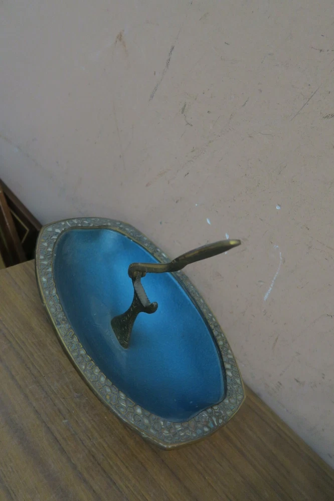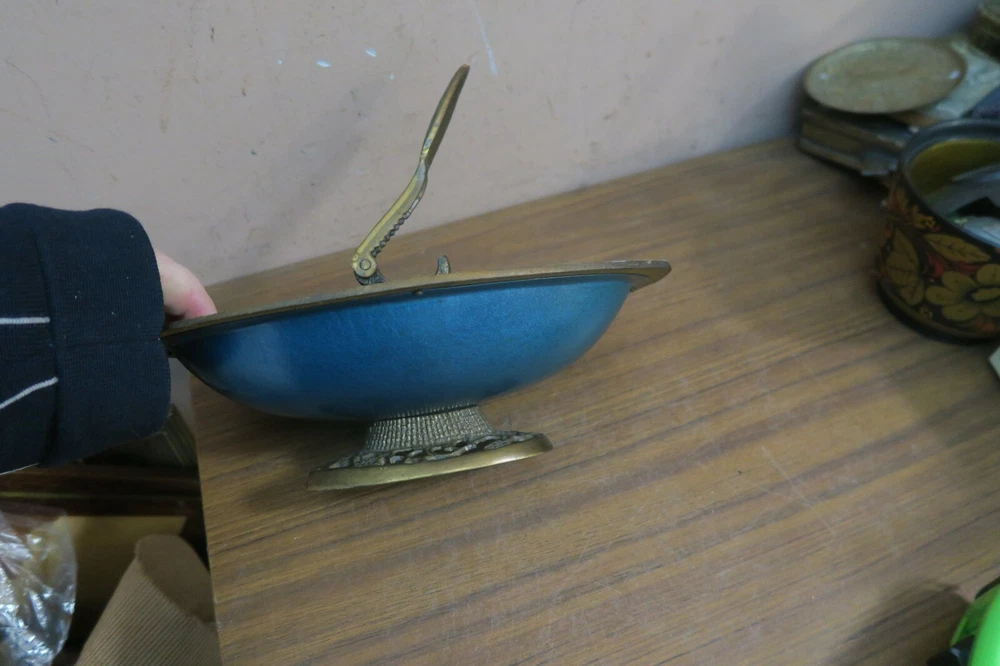 Beautiful Large Enameled Brass Nut Cracker Bowl in very good condition with normal use marks measures 10" x 6.5" and 3.5" High