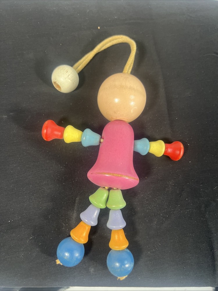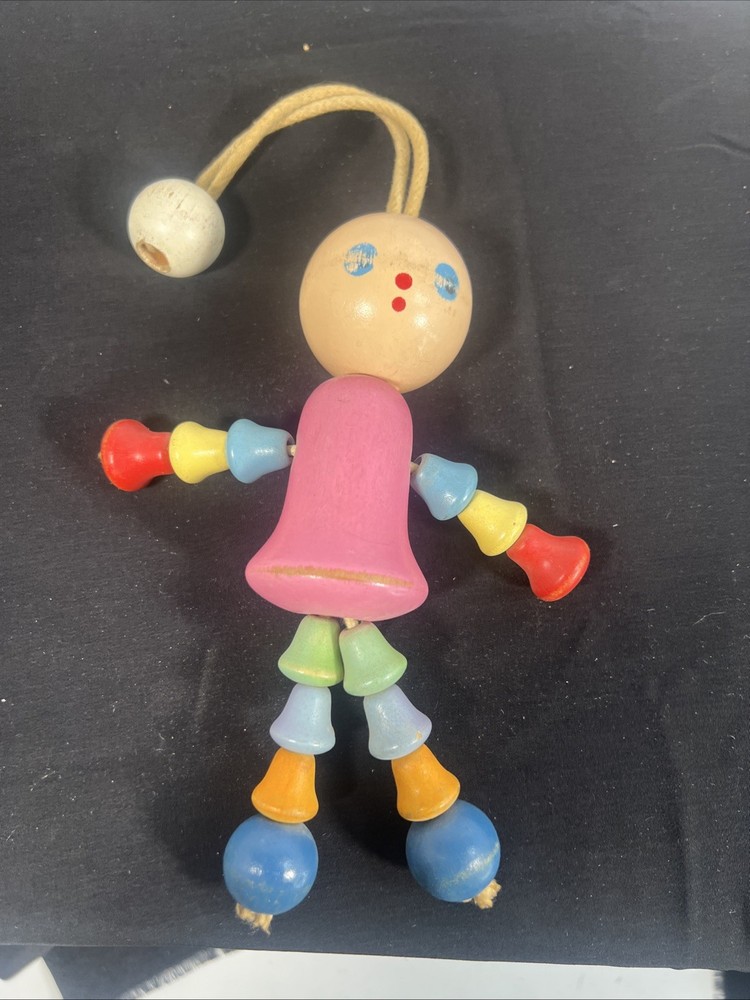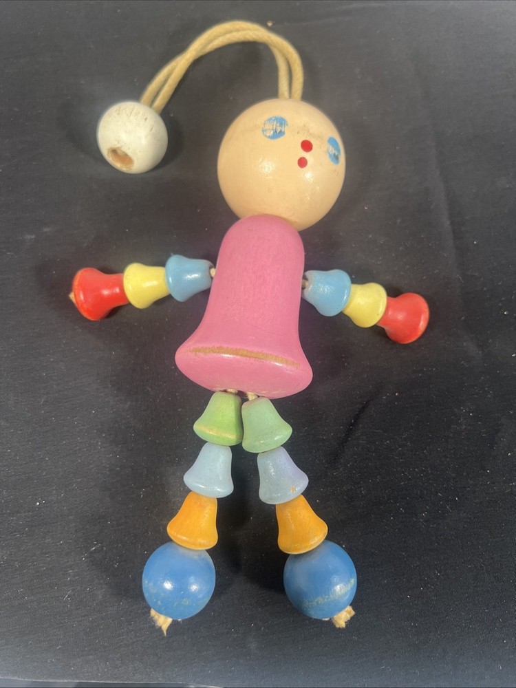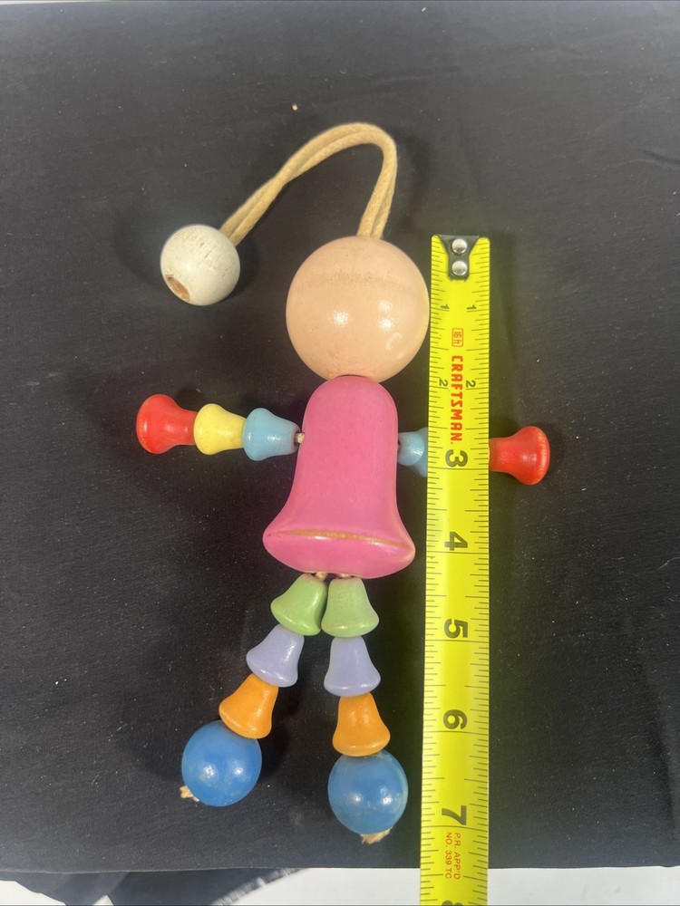 Vintage Old Wooden Baby Crib Toy Doll MCM Mobile Bead Nursery Excellent Shape