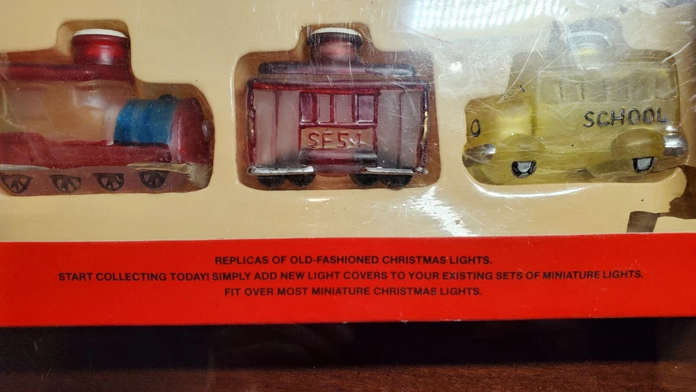 Vintage Old World Christmas Co Light Bulb Covers Glass 6 PC Set in Box Train Car