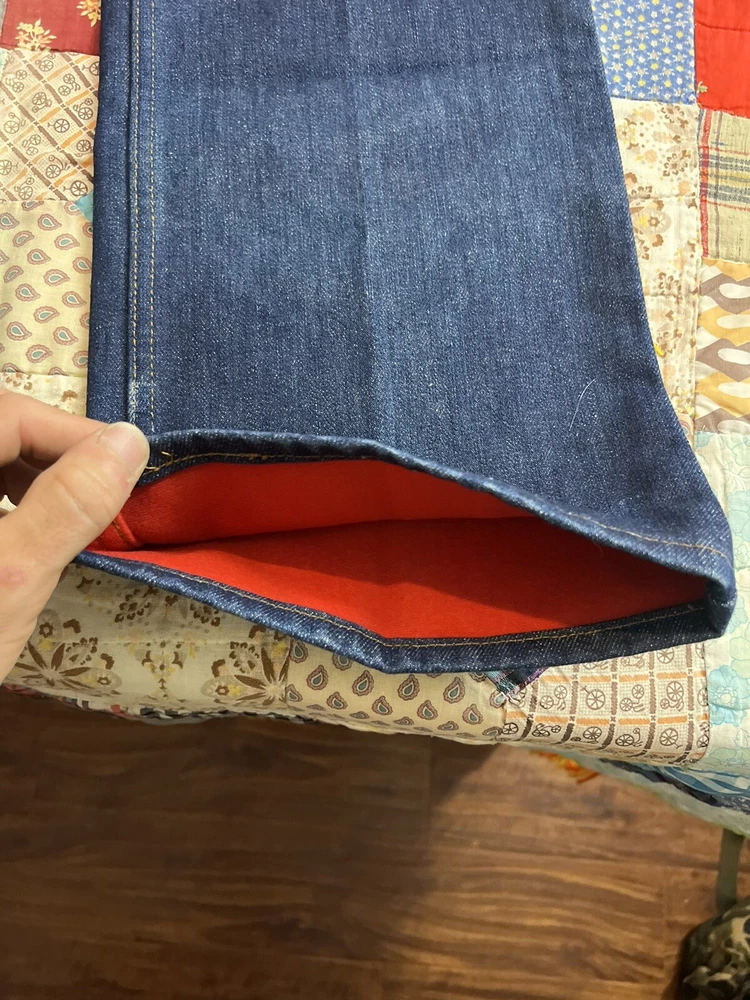 Levi’s Orange tab Red lined fleece maybe ? Denim pants Measurements in photos Measures 32x33 Good fade on back pockets Other then that very good stiff condition basically new Some flaws tho! As pictured INSPECT THE PHOTOS AND ASK ME QUESTIONS THANK YOU.