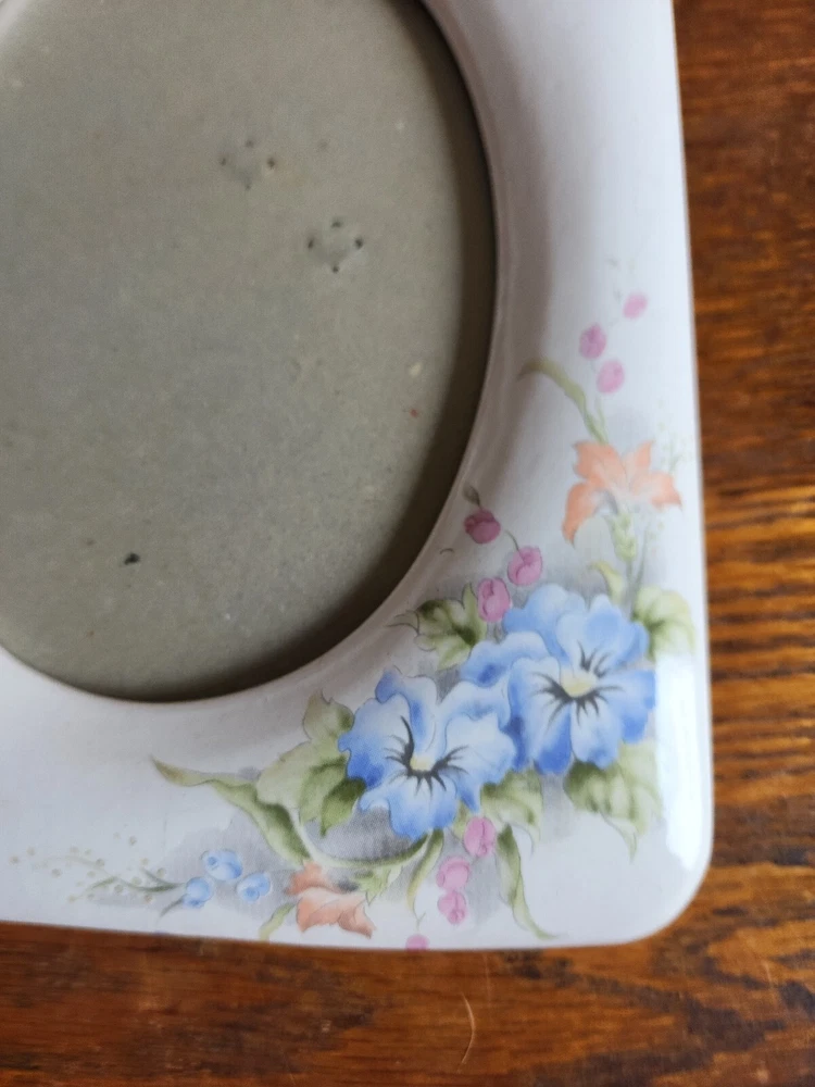 Brand: Unbranded Color: Multicolor Shape: Rectangle Features: Ornate Suitable for Photo Size: 6.5 x 4.5 in Photo Insertion Type: Rear-Loading Personalize: No Power Source: none Finish: matte,shiny Item Width: 7 in Item Length: 9 in Theme: Art Type: Photo Frame Style: Shabby Department: Adults Country/Region of Manufacture: Unknown Material: ceramic,plastic,wood Glass Type: Clear Glass Item Height: 0 Pattern: Floral Mounting: Free Standing Orientation: Portrait Character: unknown Photo Capacity: 1 Occasion: All Occasions Character Family: unknown Size: 9 x 7 in