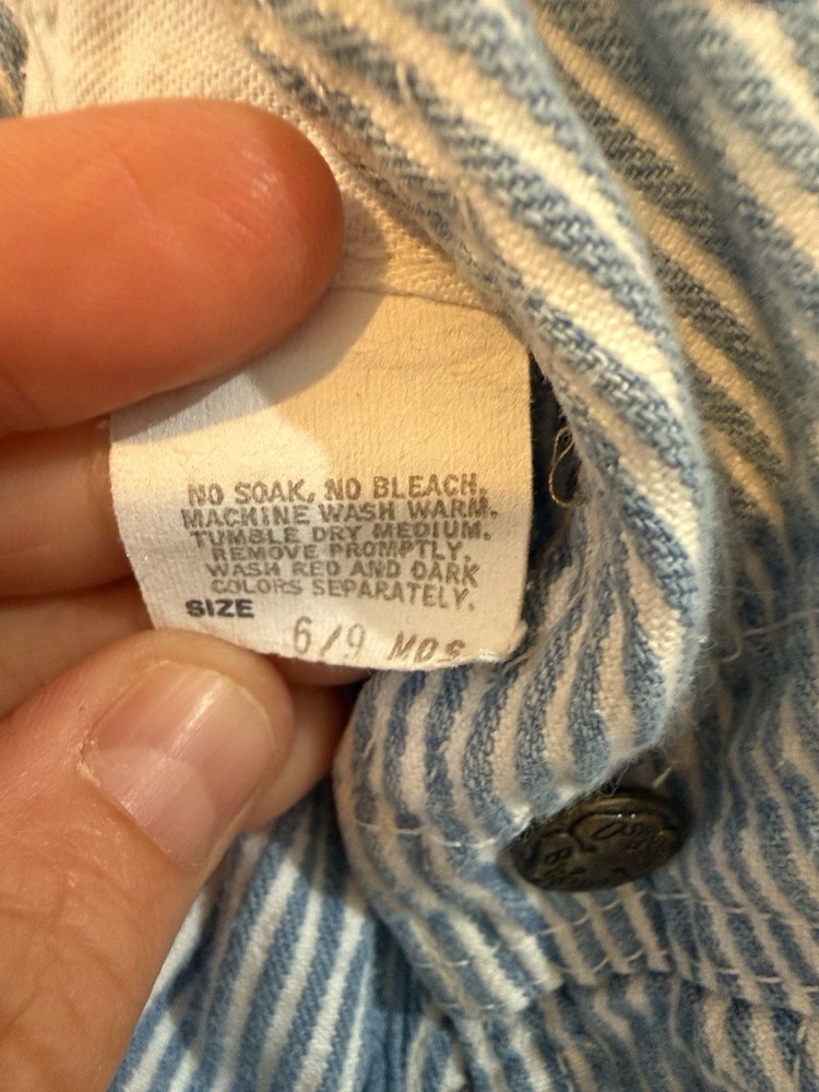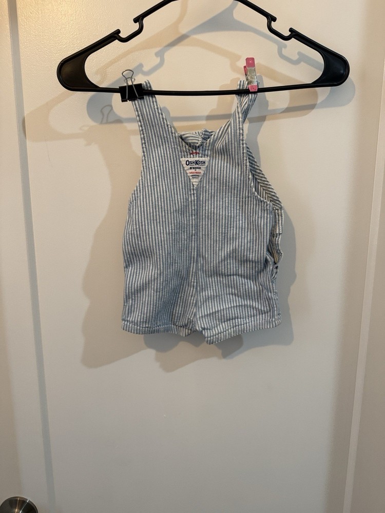 Department: Unisex Baby & Toddler Garment Care: Machine Washable Type: One-Piece Material: Cotton Closure: Button Style: Overall Sleeve Length: Sleeveless Color: Blue, White Fabric Type: Denim Accents: Button, Logo Pattern: Striped Size: 6/9 Months Neckline: Square Neck Brand: OshKosh B'gosh Number of Pieces: 1 Piece