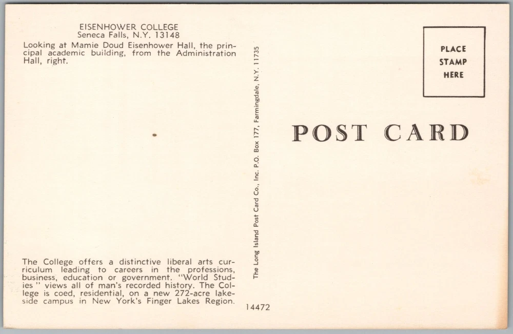 Vintage Outside View Eisenhower College Seneca Falls New York Postcard H578
