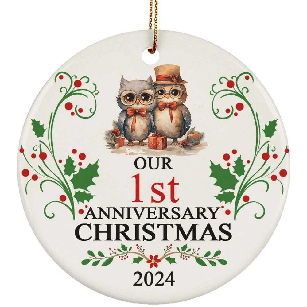 Vintage Owl Couple Ornament Our 1st Anniversary Christmas 1 Year Together Gift