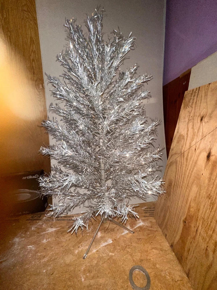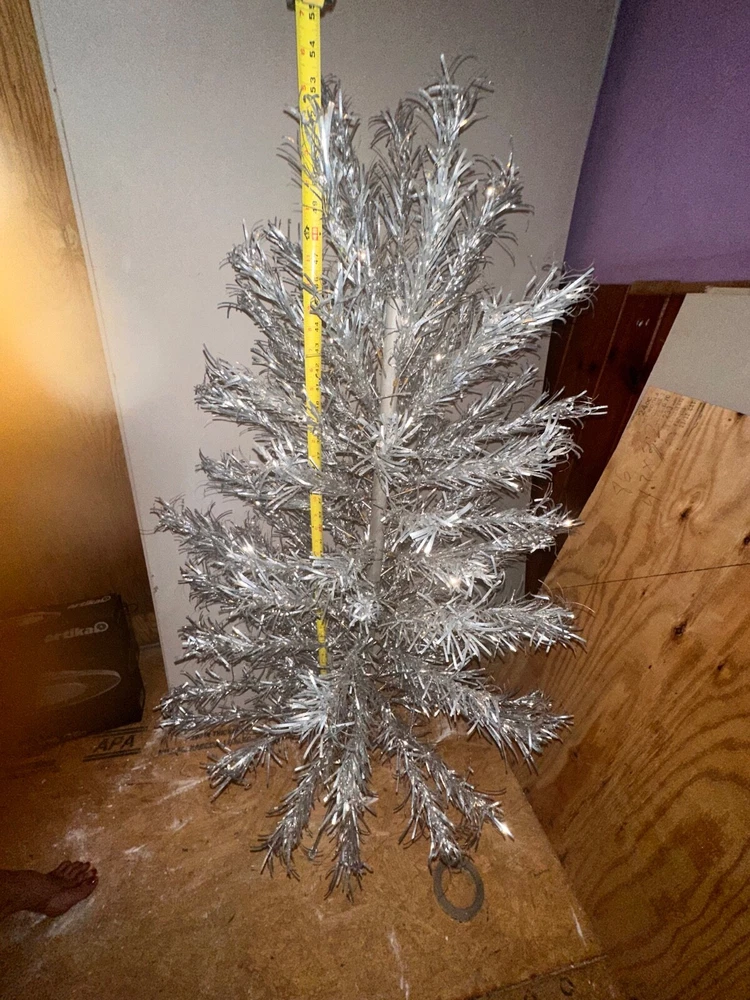 This vintage PECO Deluxe Christmas Tree is a perfect addition to your holiday decor. The 4 ft aluminum tree has 55 branches and comes with a stand, sleeves, and a box. Its silver color and artificial appearance give it a unique and festive look. The tree was manufactured in the United States in 1950 and is a great collectible item for any holiday enthusiast. Its size of 48 inches and the brand name Peco make it a valuable addition to your Christmas tree collection. Celebrate the holidays in style with this vintage Christmas tree.