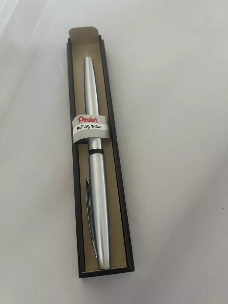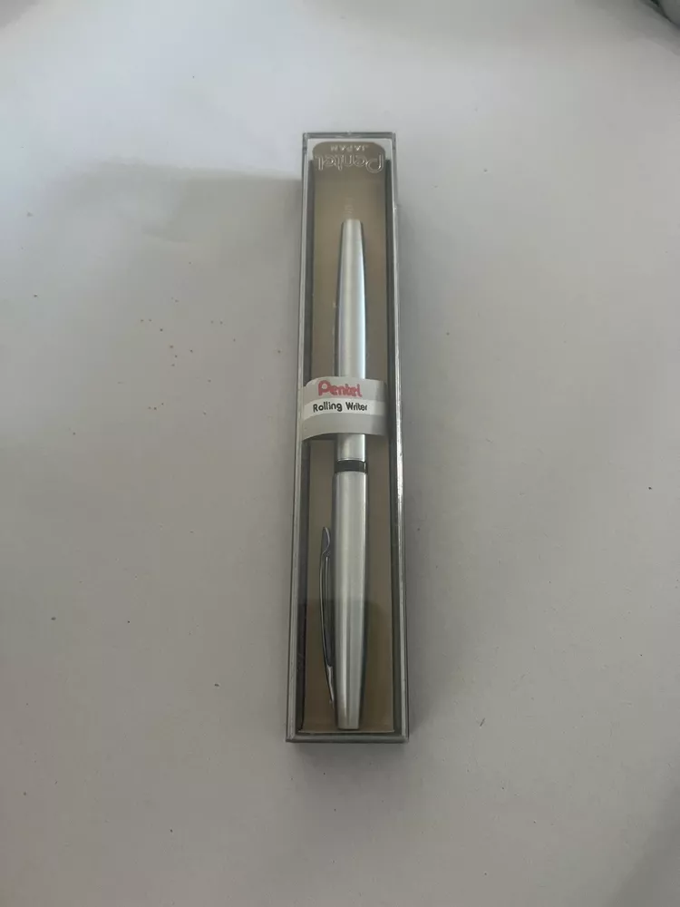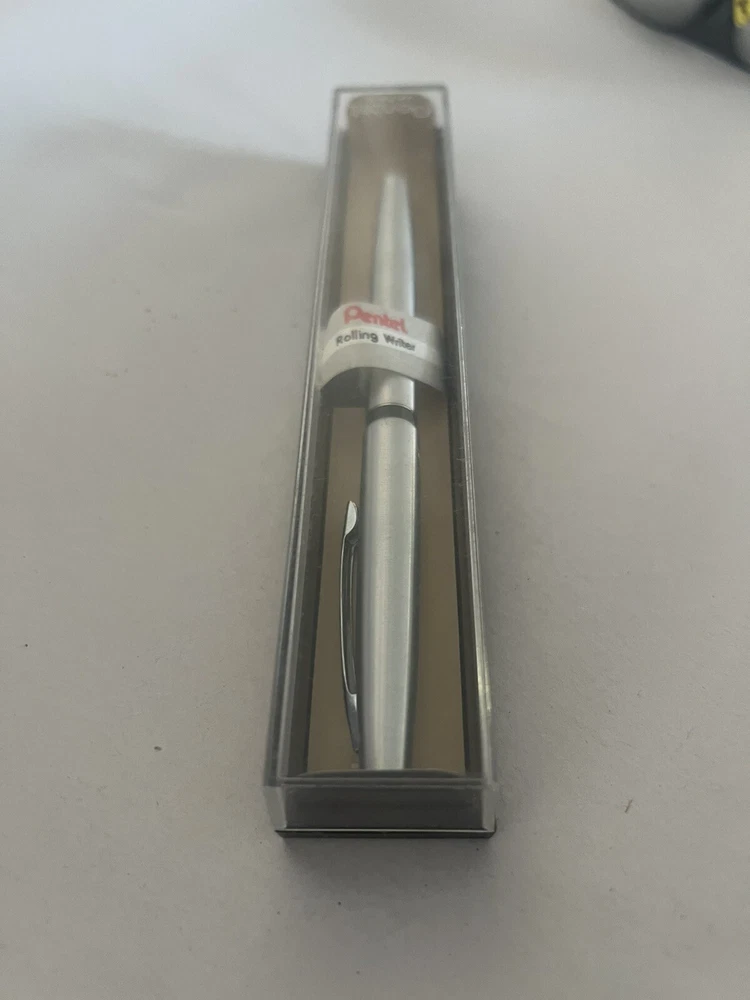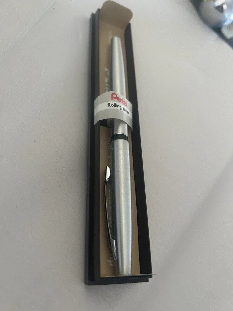 Vintage PENTEL Rolling Writer SILVER Rollerball Black Pen Japan