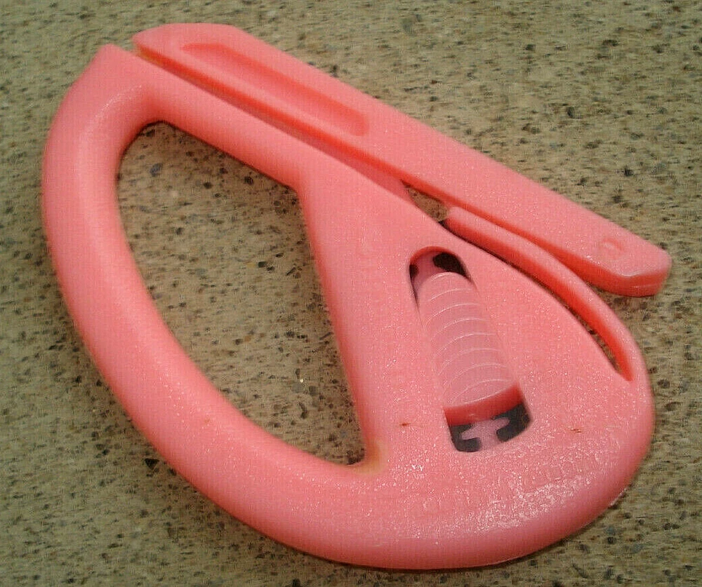 Vintage PINK Plastic Paper Coupon Cutter Letter Opener? 1960s HONG KONG 4" Tool