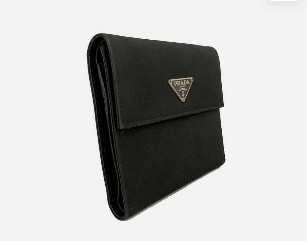 Vintage PRADA Logo Nylon Trifold Wallet in Black